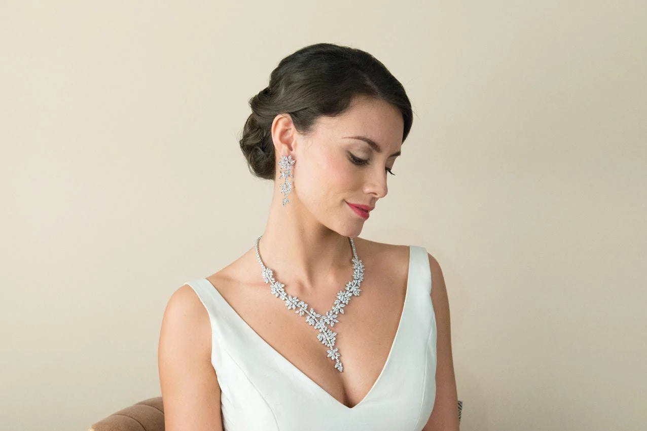 Add Crystal Vine Necklace & Earrings Wedding Jewellery Set 6085 to the cart