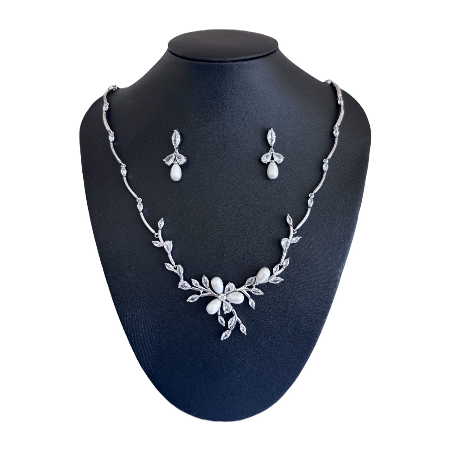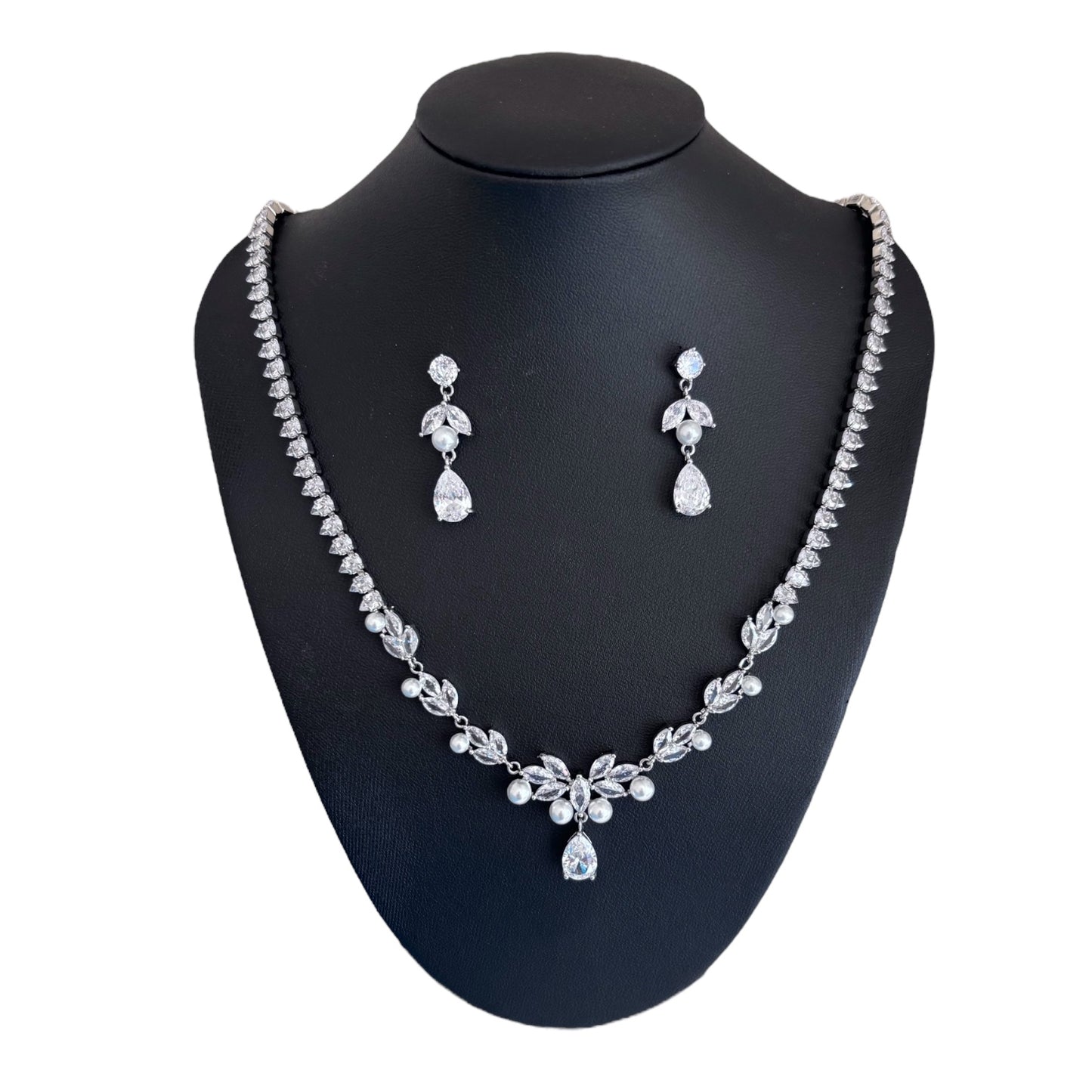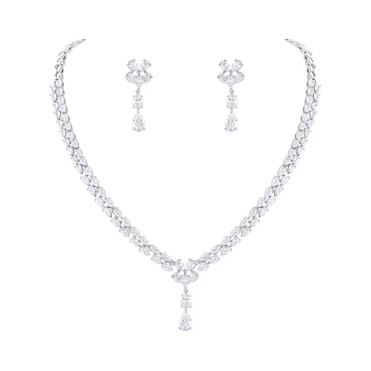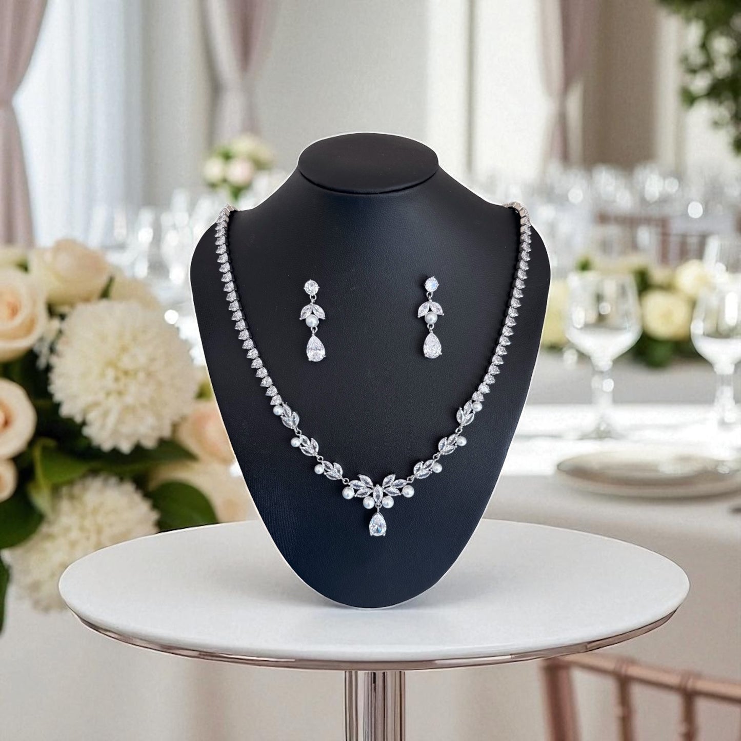 Add Bridal Jewellery Set in Silver with Crystals, Necklace & Earring TT1097 to the cart