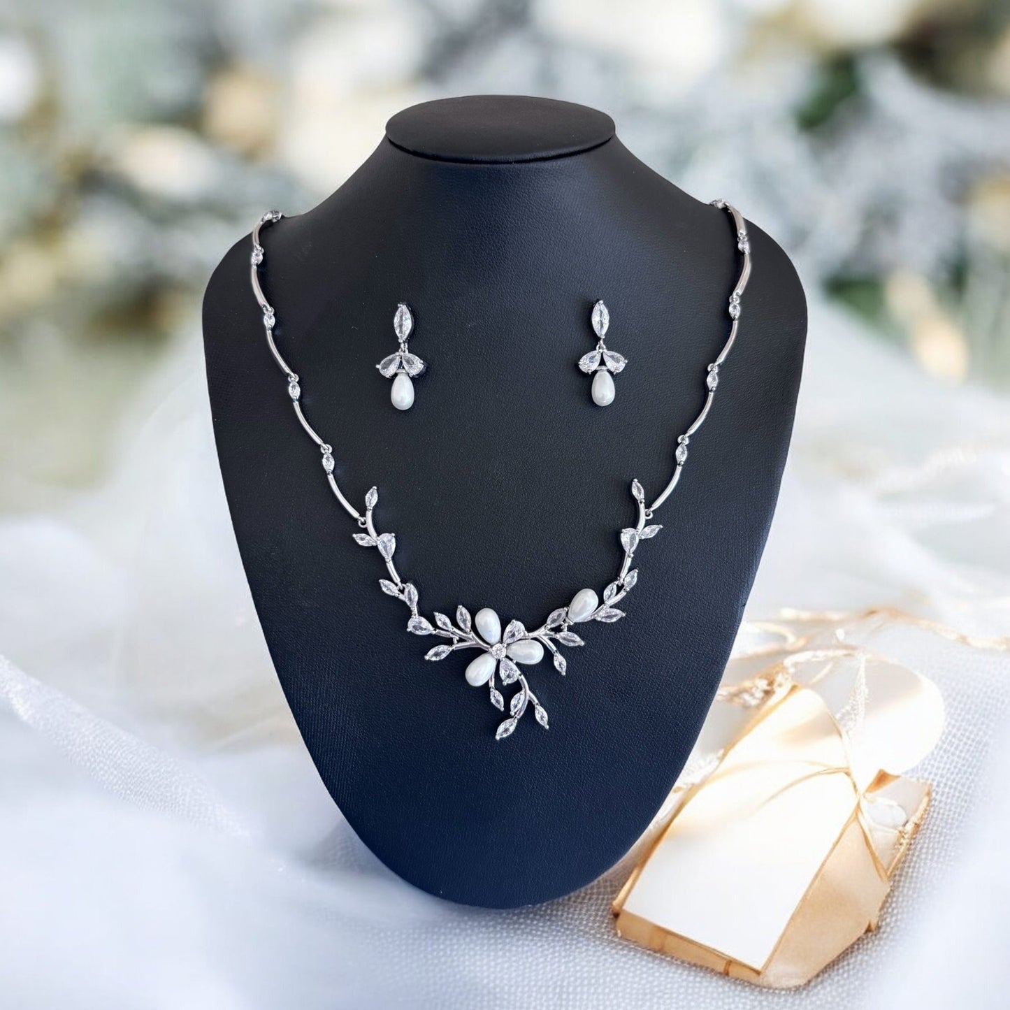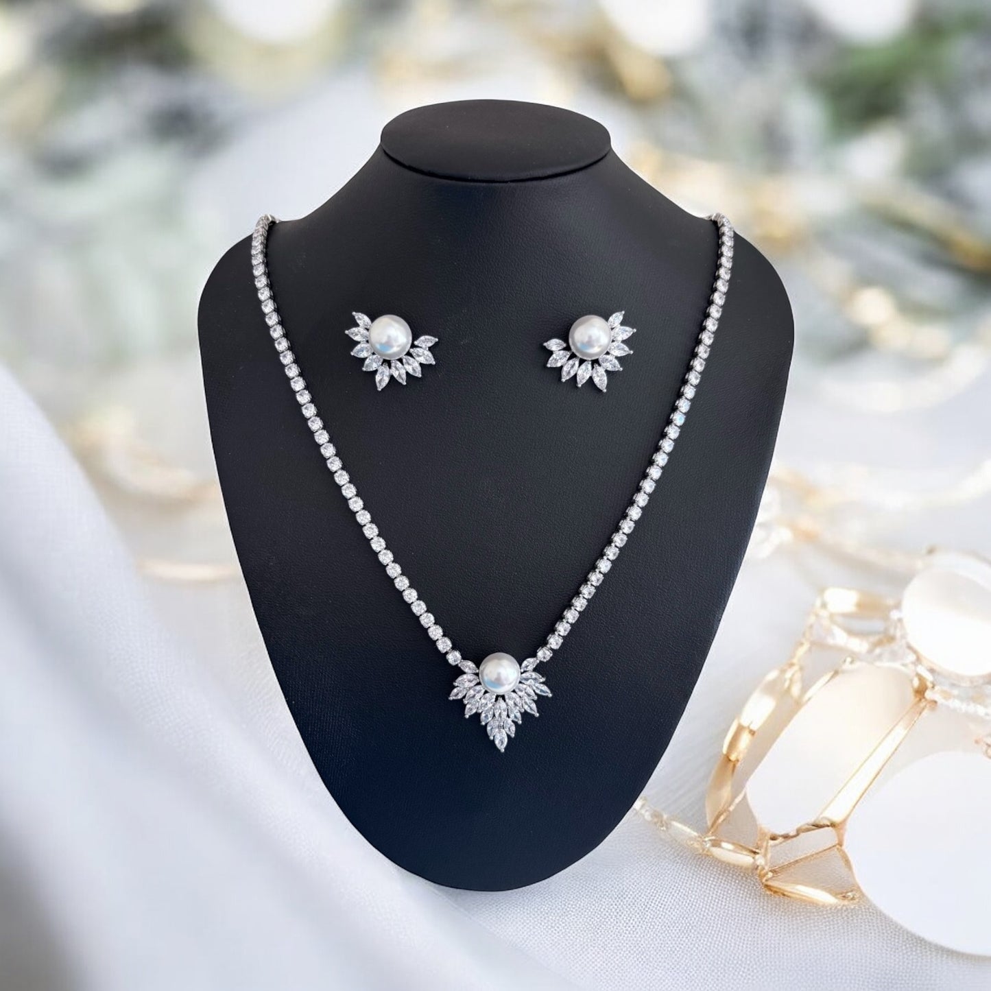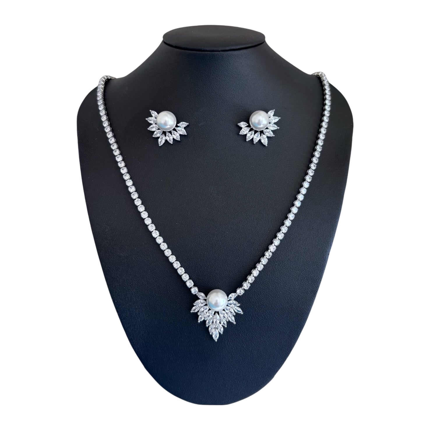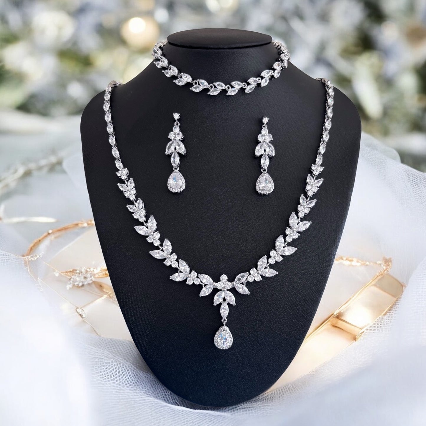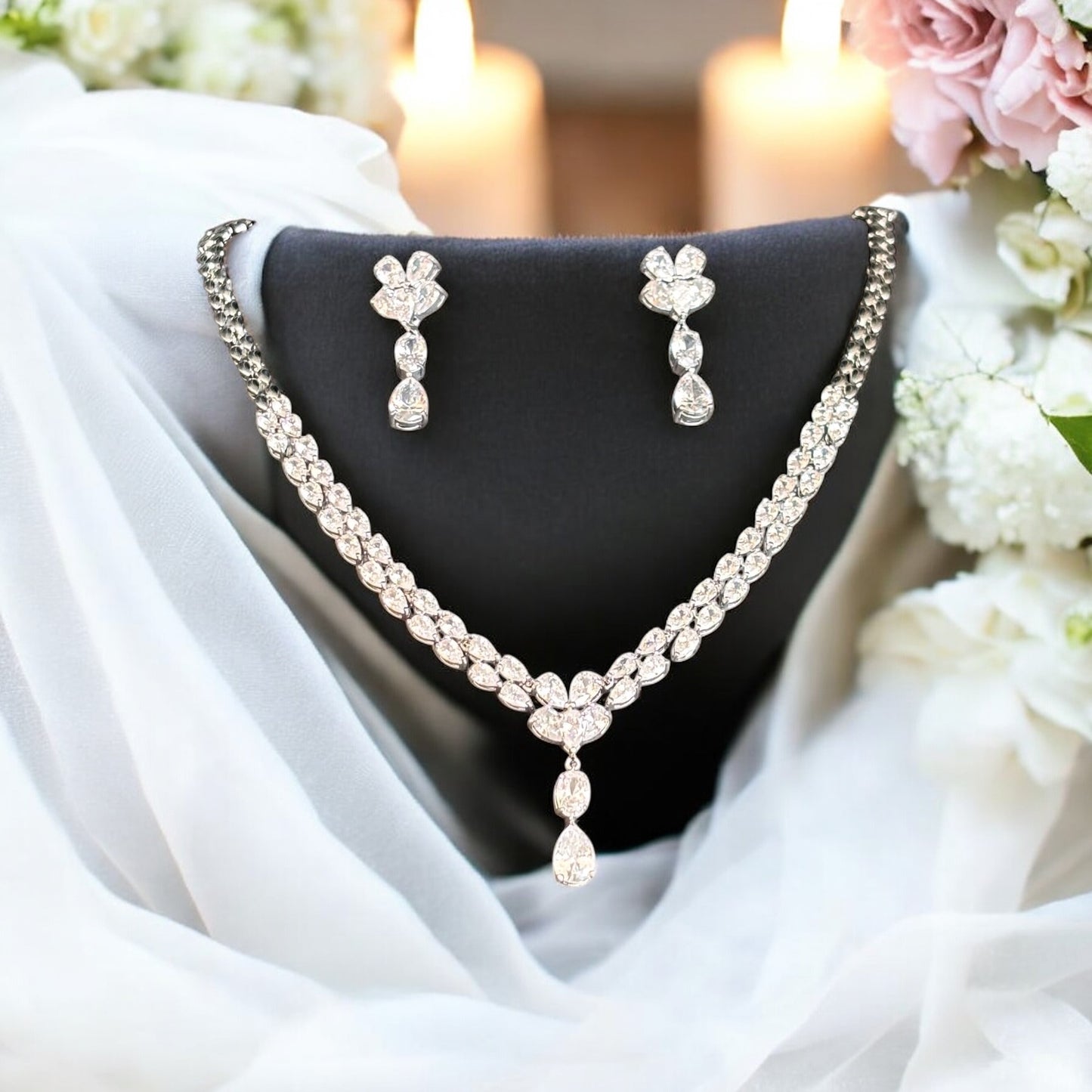 Add Bridal Jewellery Set in Silver with Crystals, Necklace & Earring TT1097 to the cart