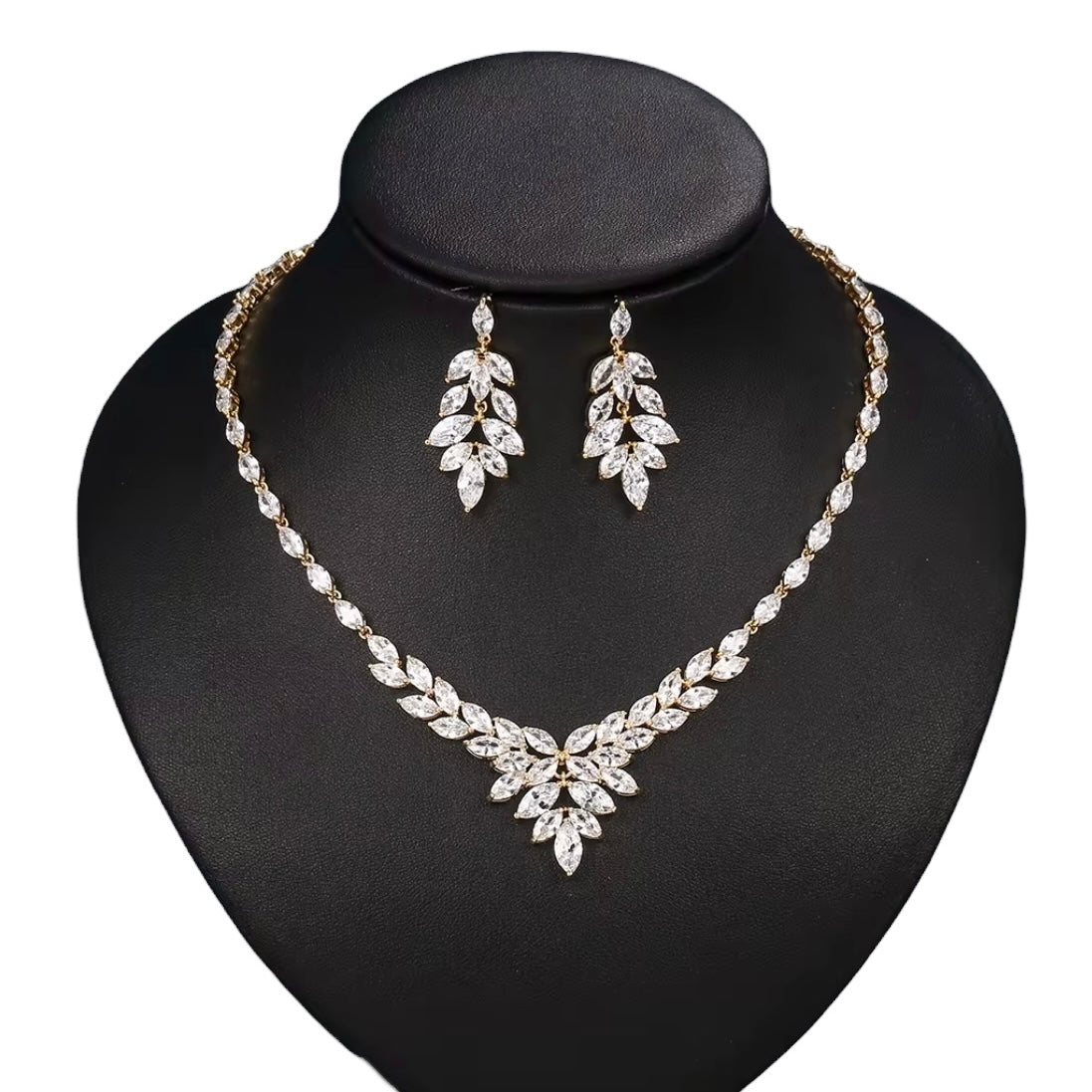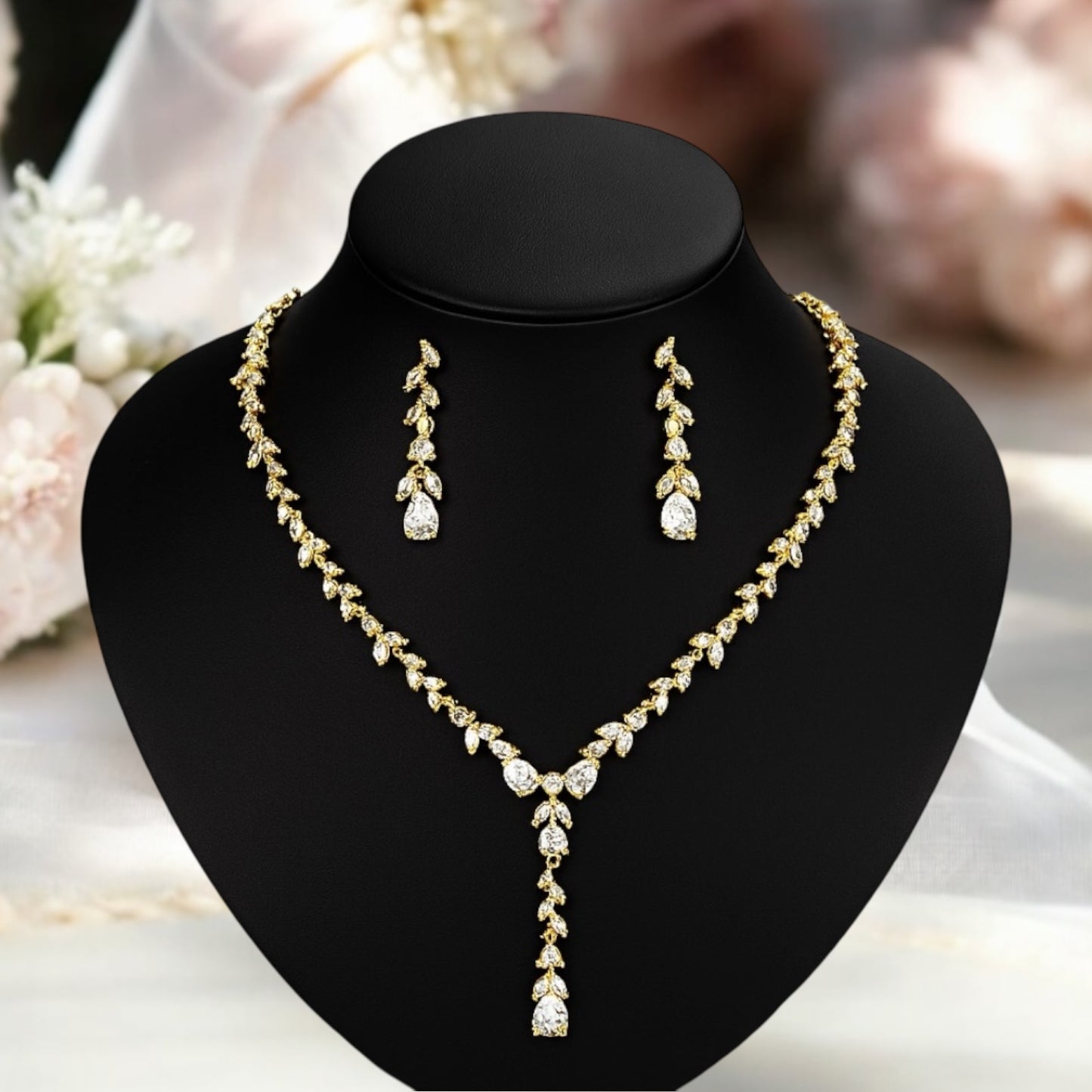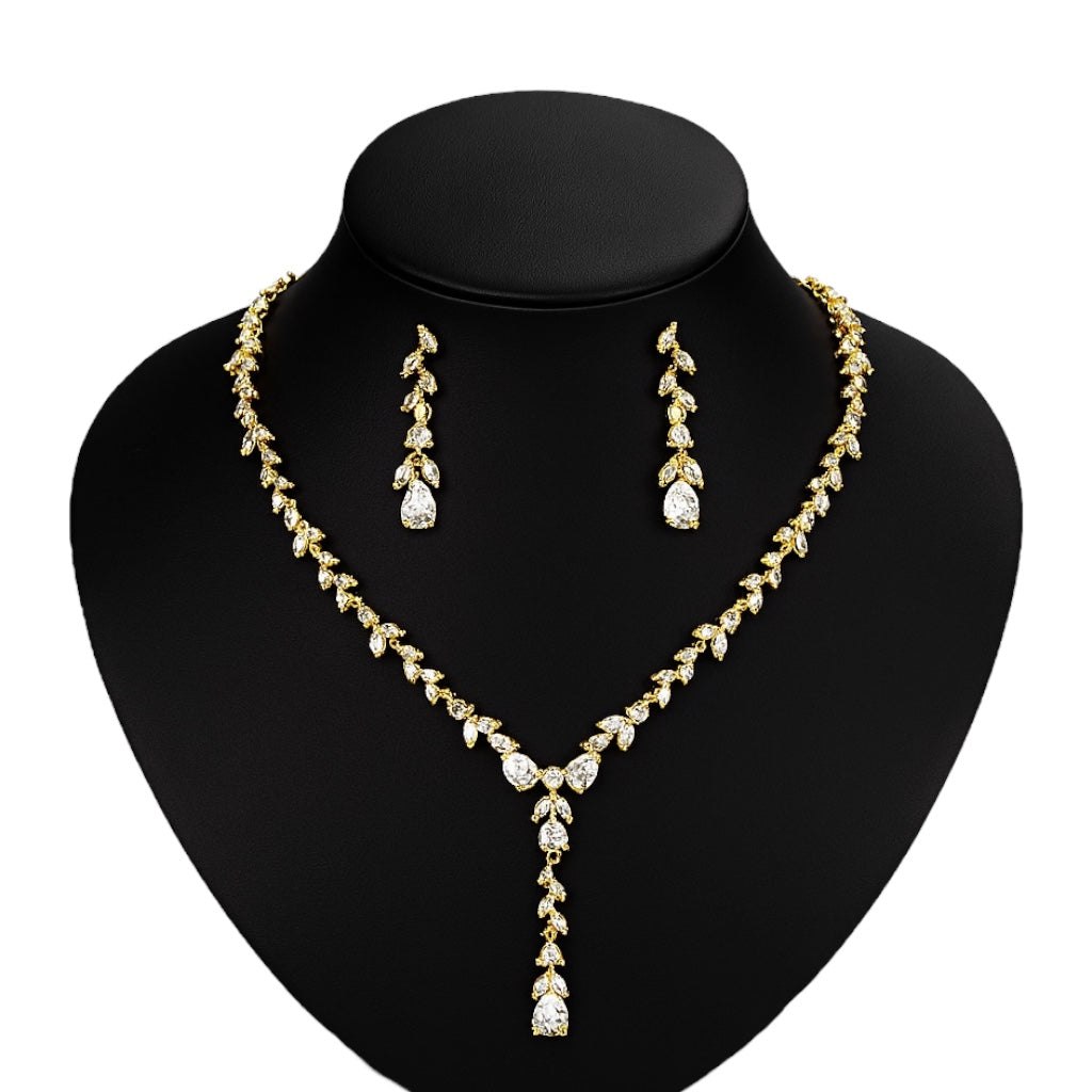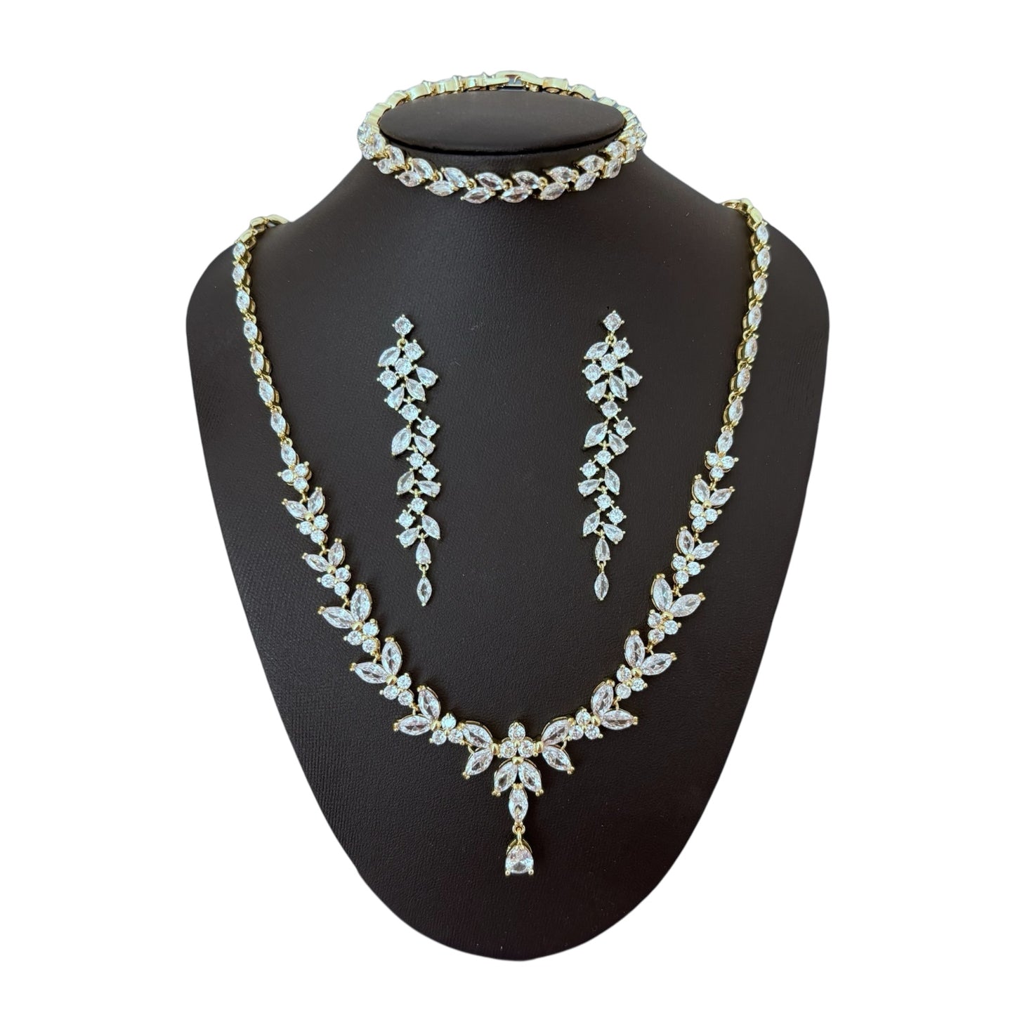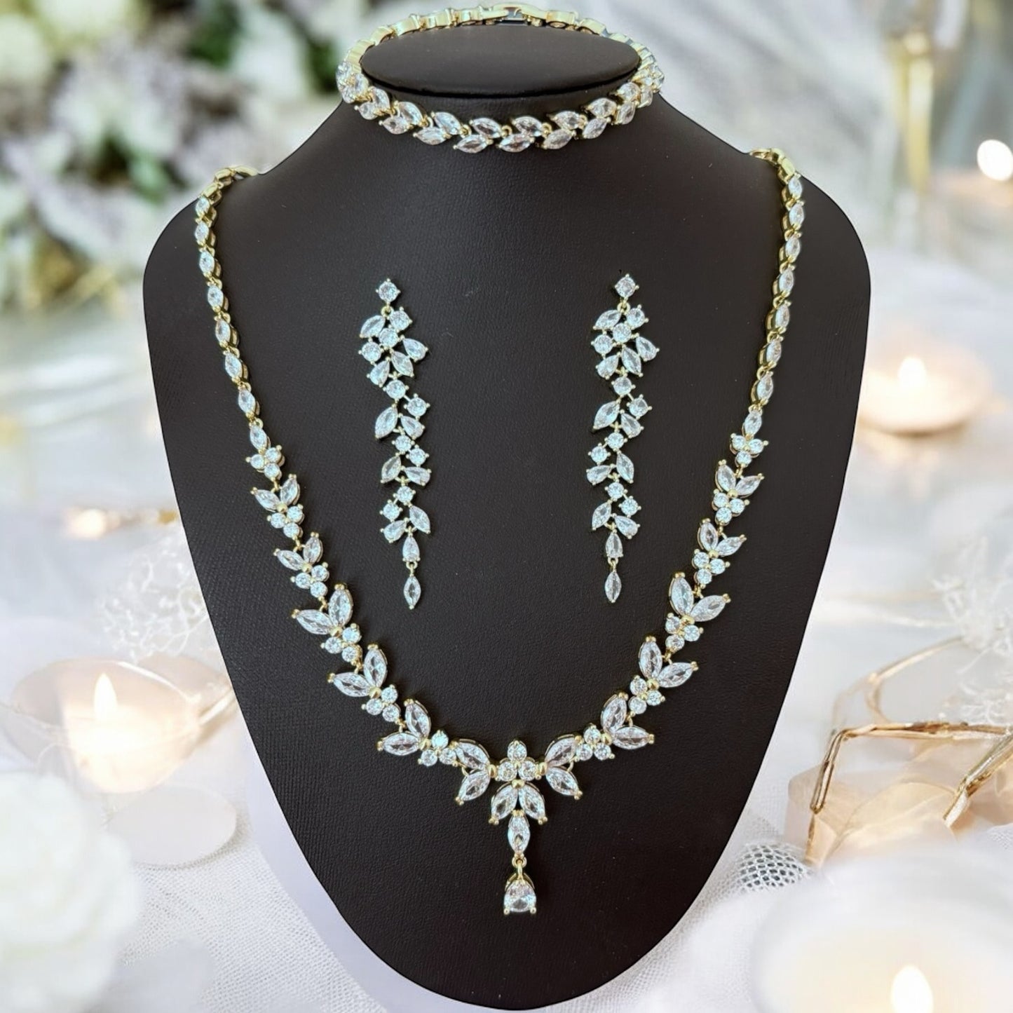 Add Gold Wedding Jewellery, Crystal Necklace, Earrings and Bracelet Set, TT1090 to the cart