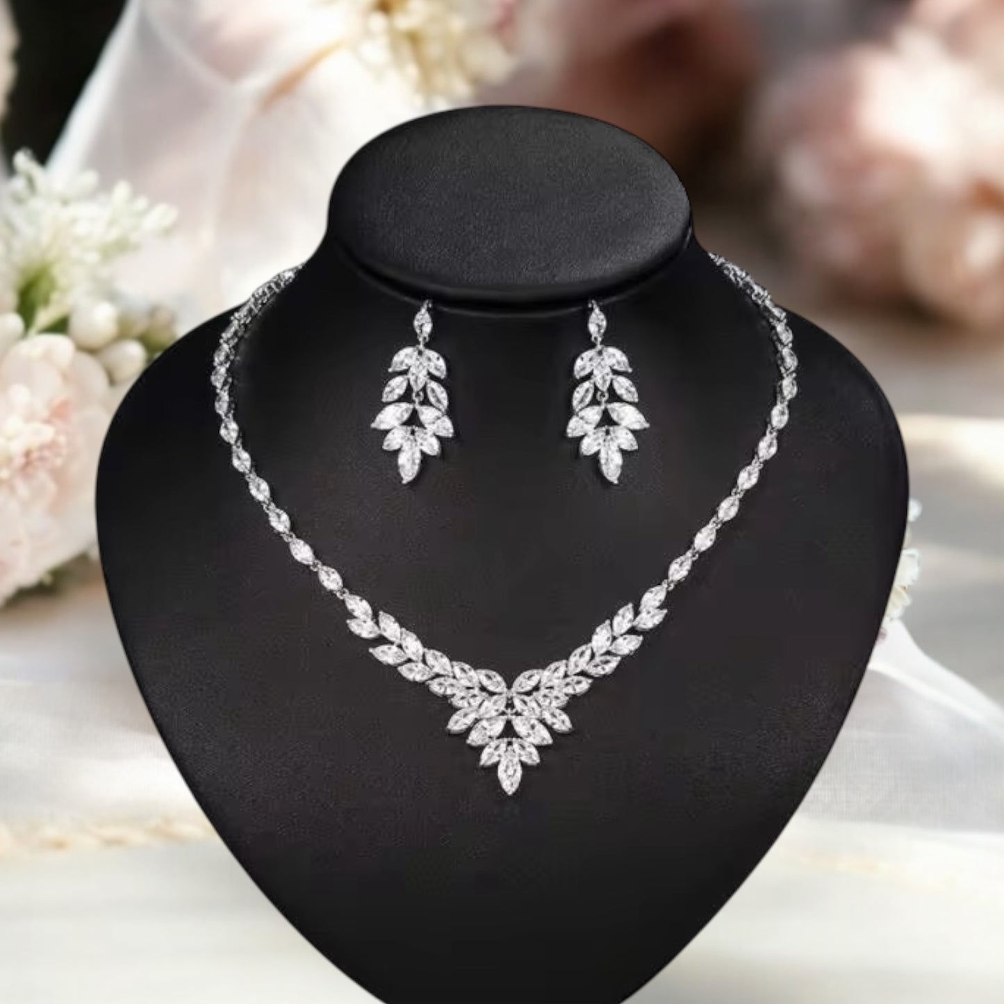 Add Crystal Bridal Jewellery Set, Silver Necklace & Earring TT1095 to the cart