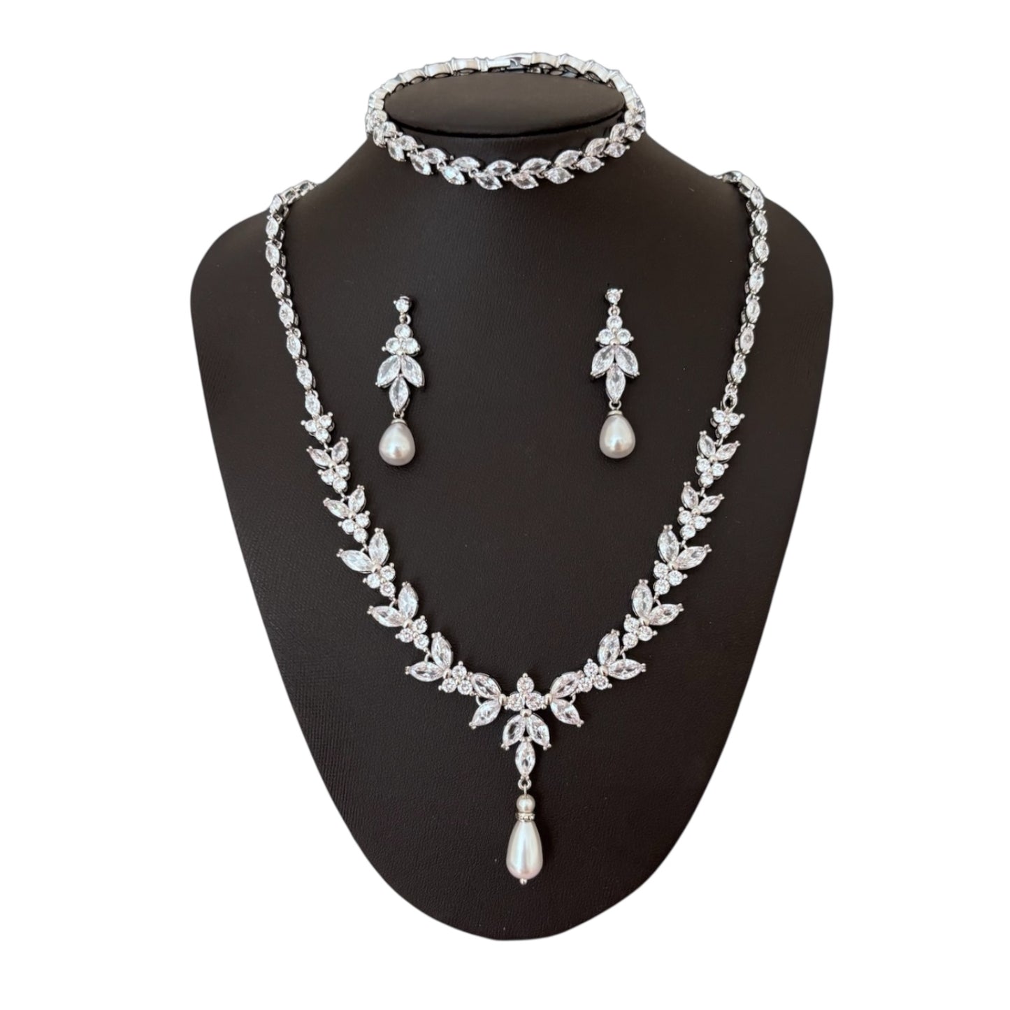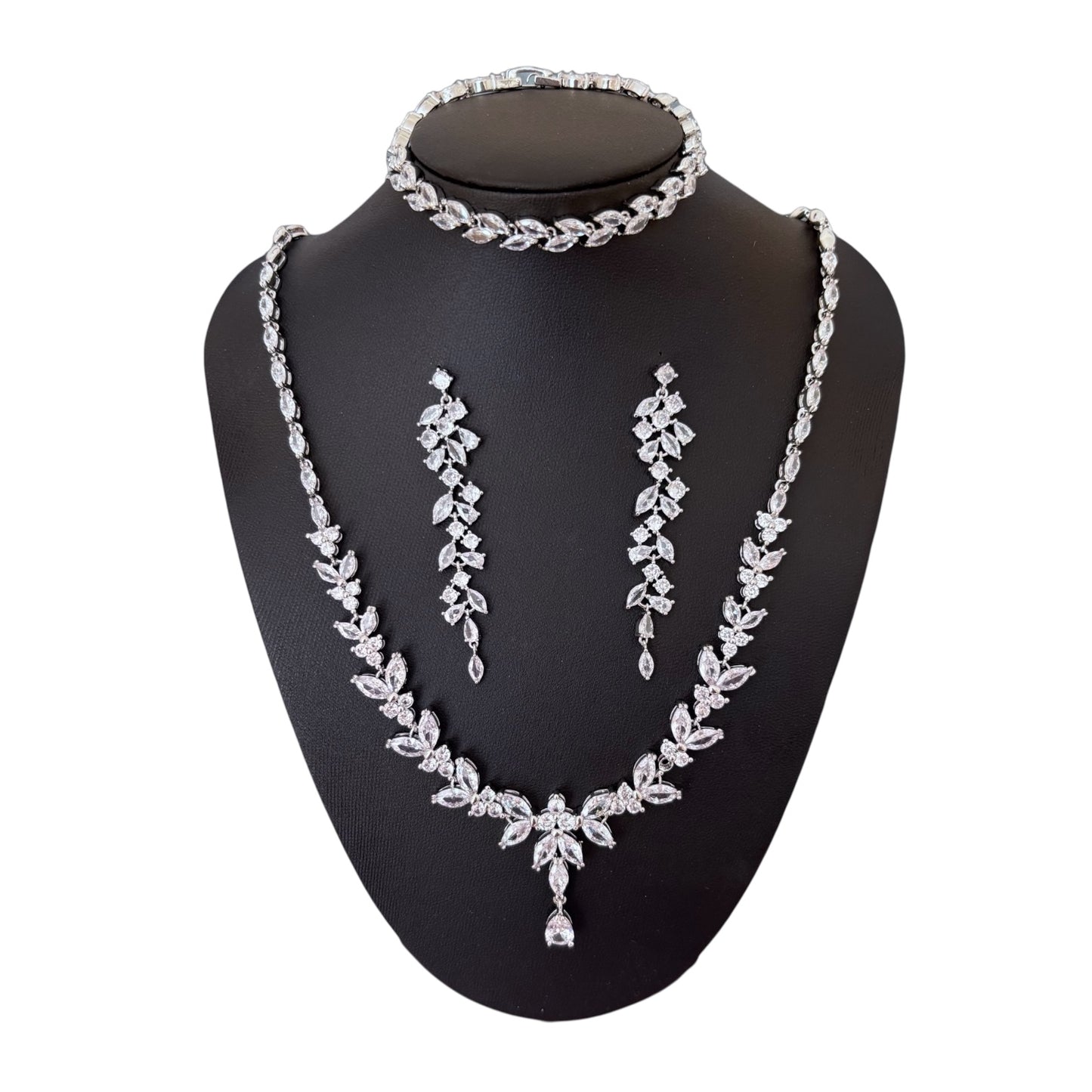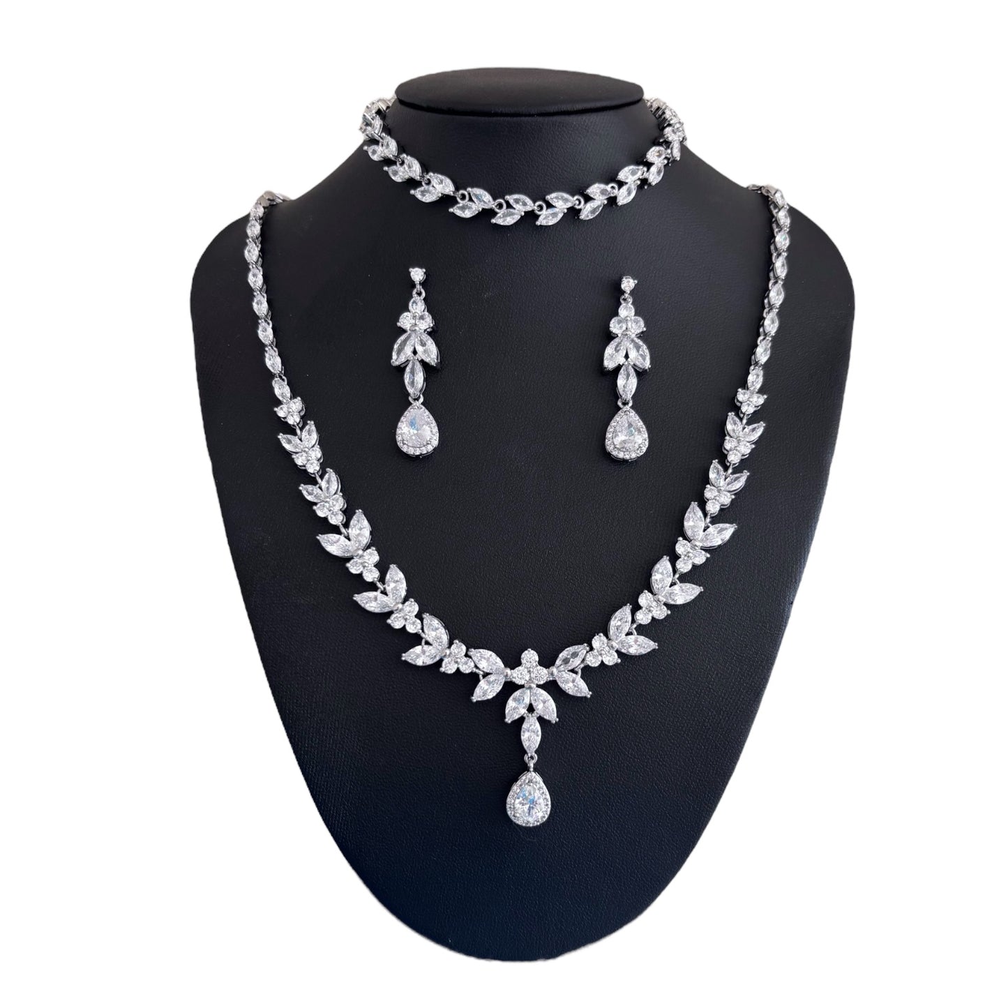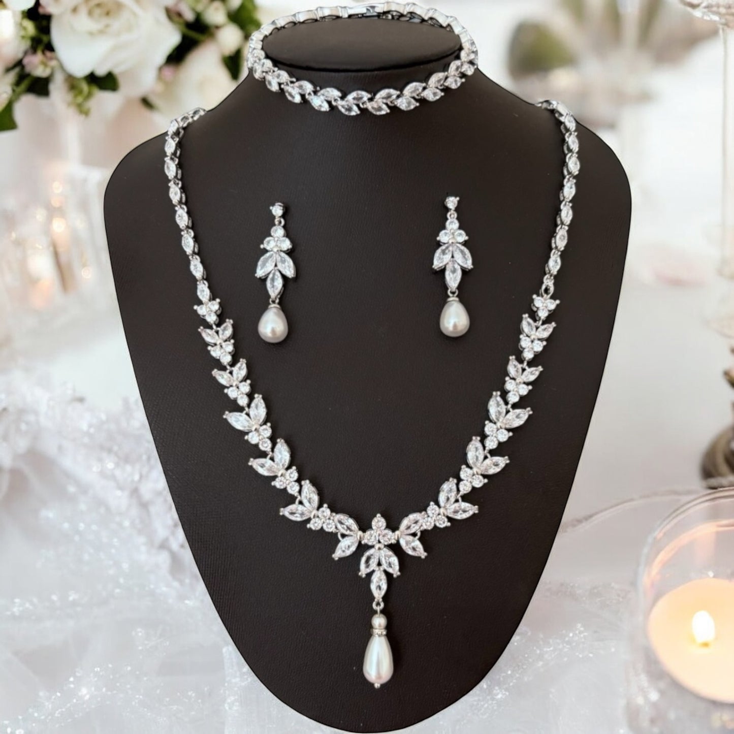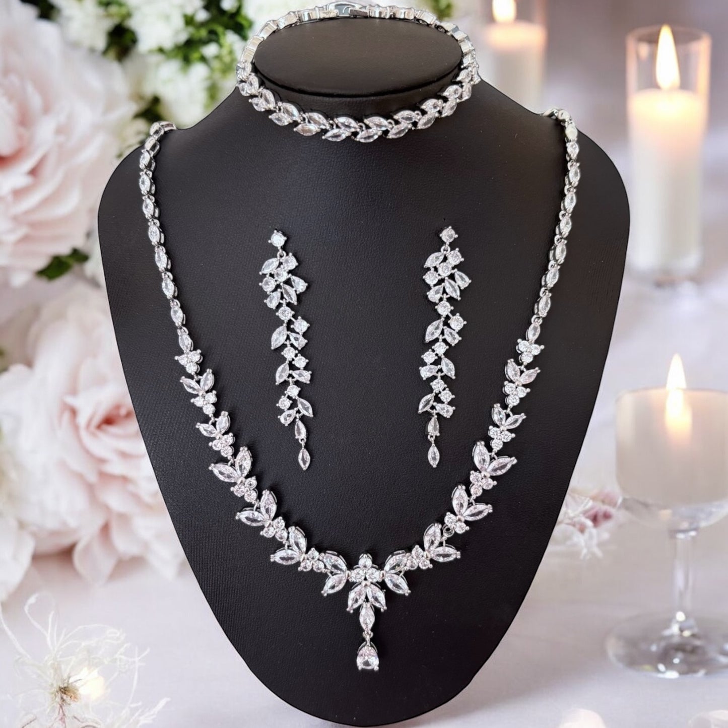Add Silver Wedding Jewellery, Crystal Necklace, Earrings and Bracelet Set, TT1089 to the cart