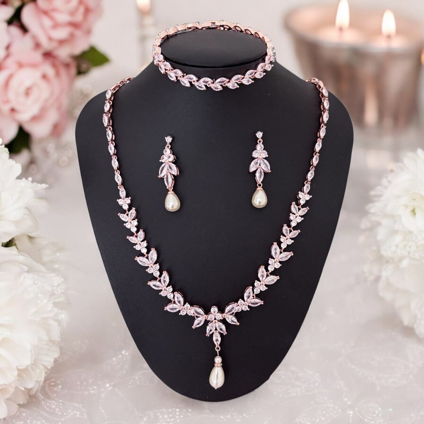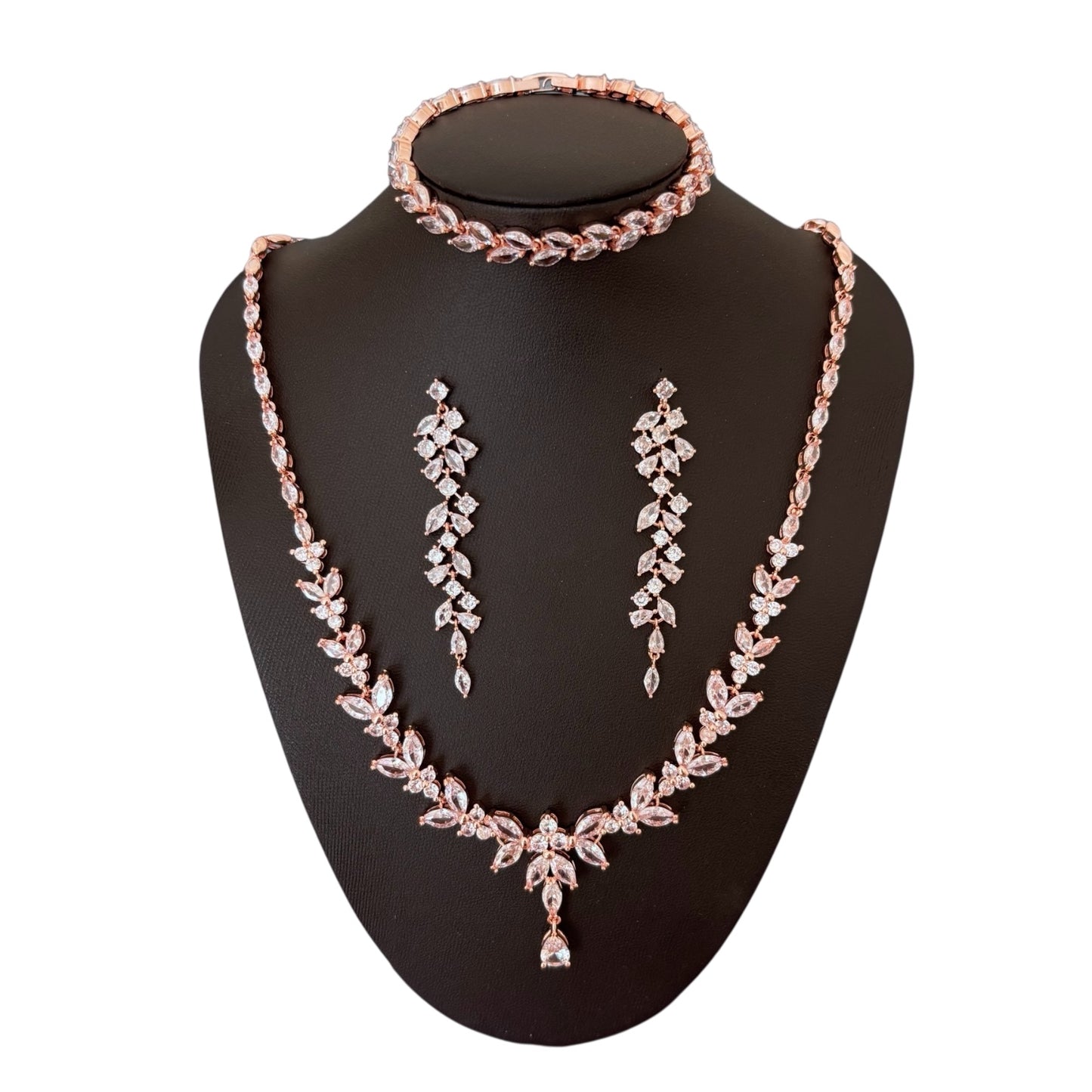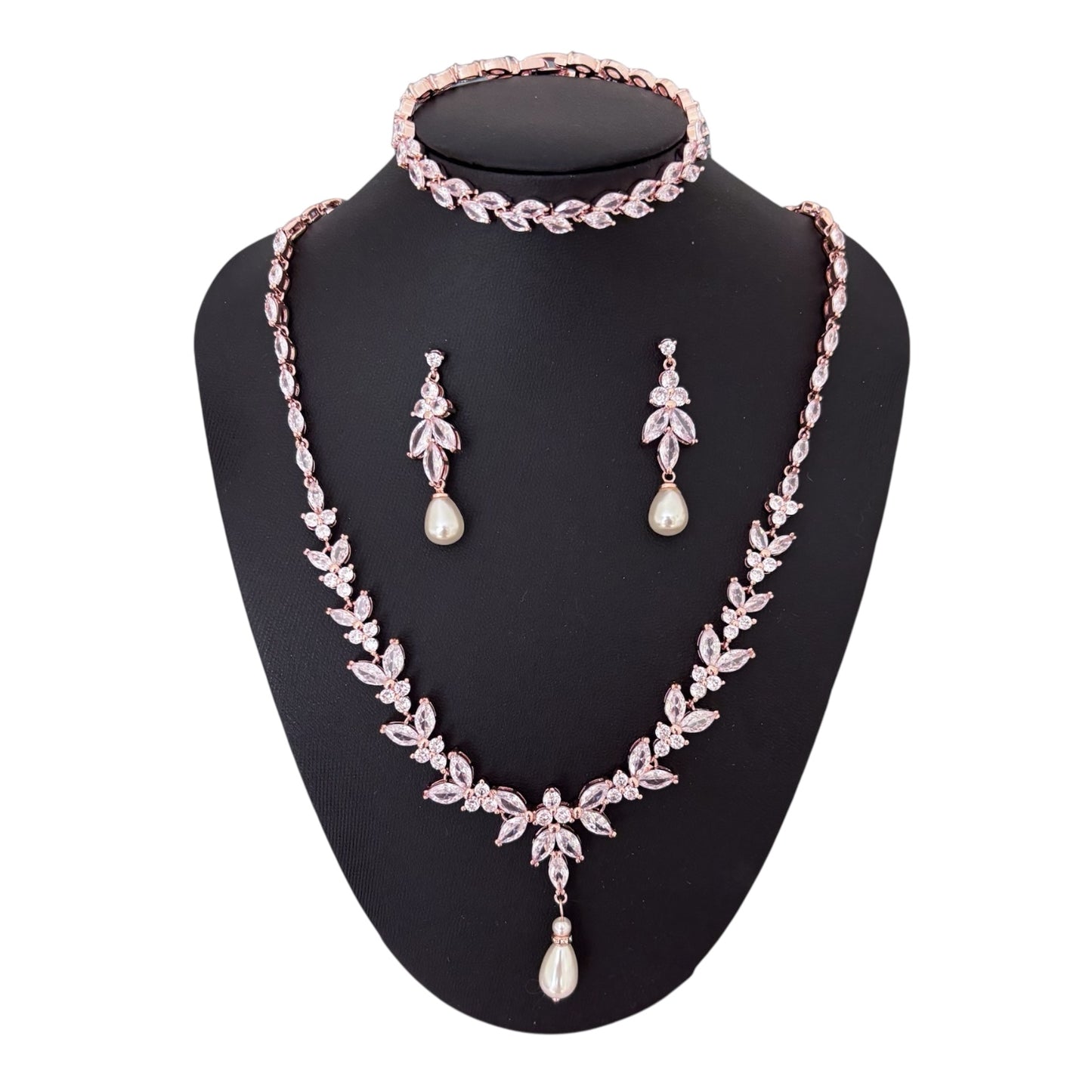 Add Rose Gold Wedding Jewellery, Crystal Necklace, Earrings and Bracelet Set, TT1091 to the cart