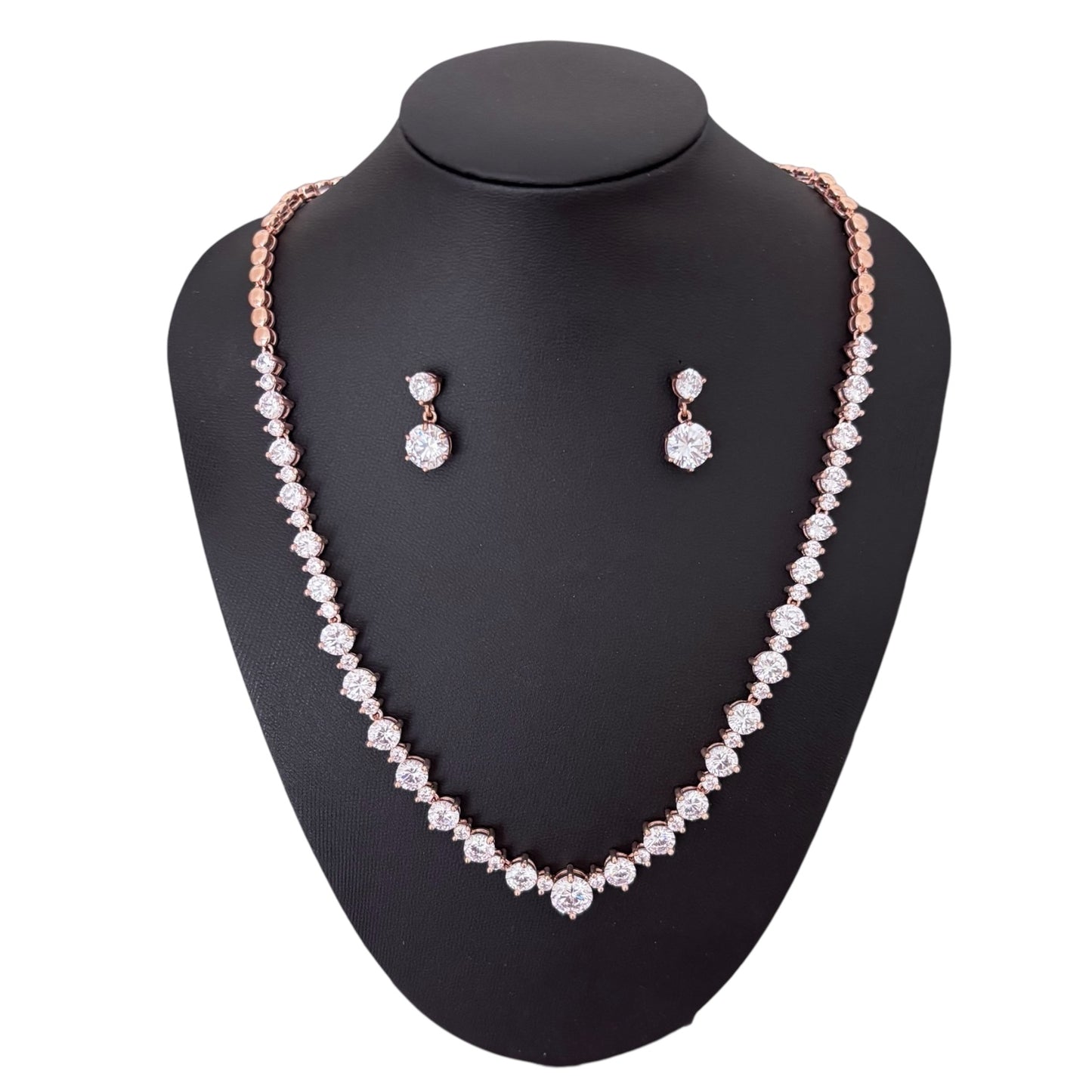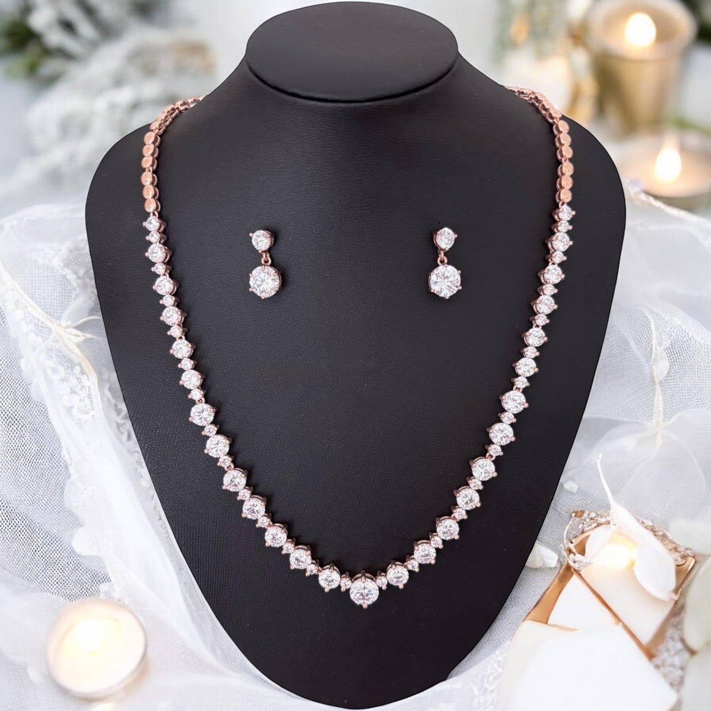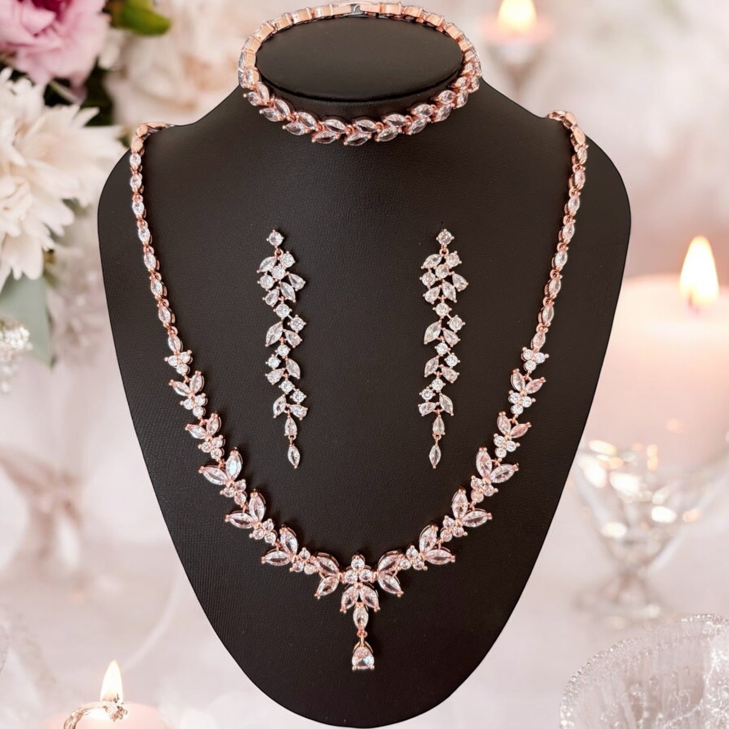 Add Rose Gold Wedding Jewellery, Crystal Necklace, Earrings and Bracelet Set, TT1091 to the cart