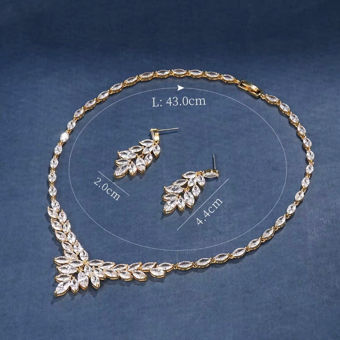 Design: Leaf motif with Cubic Zirconia Crystals