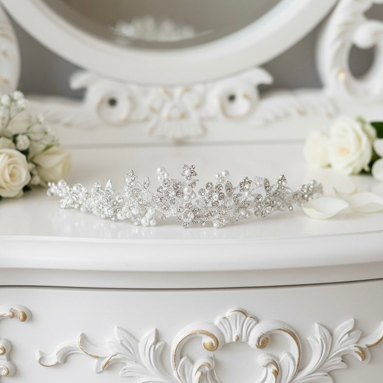 Crystal & Pearl Bridal Tiara – Floral Wedding Crown TLT4504
