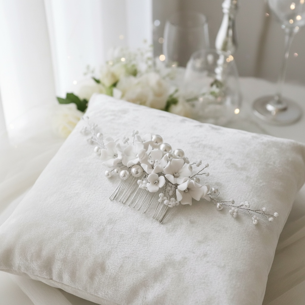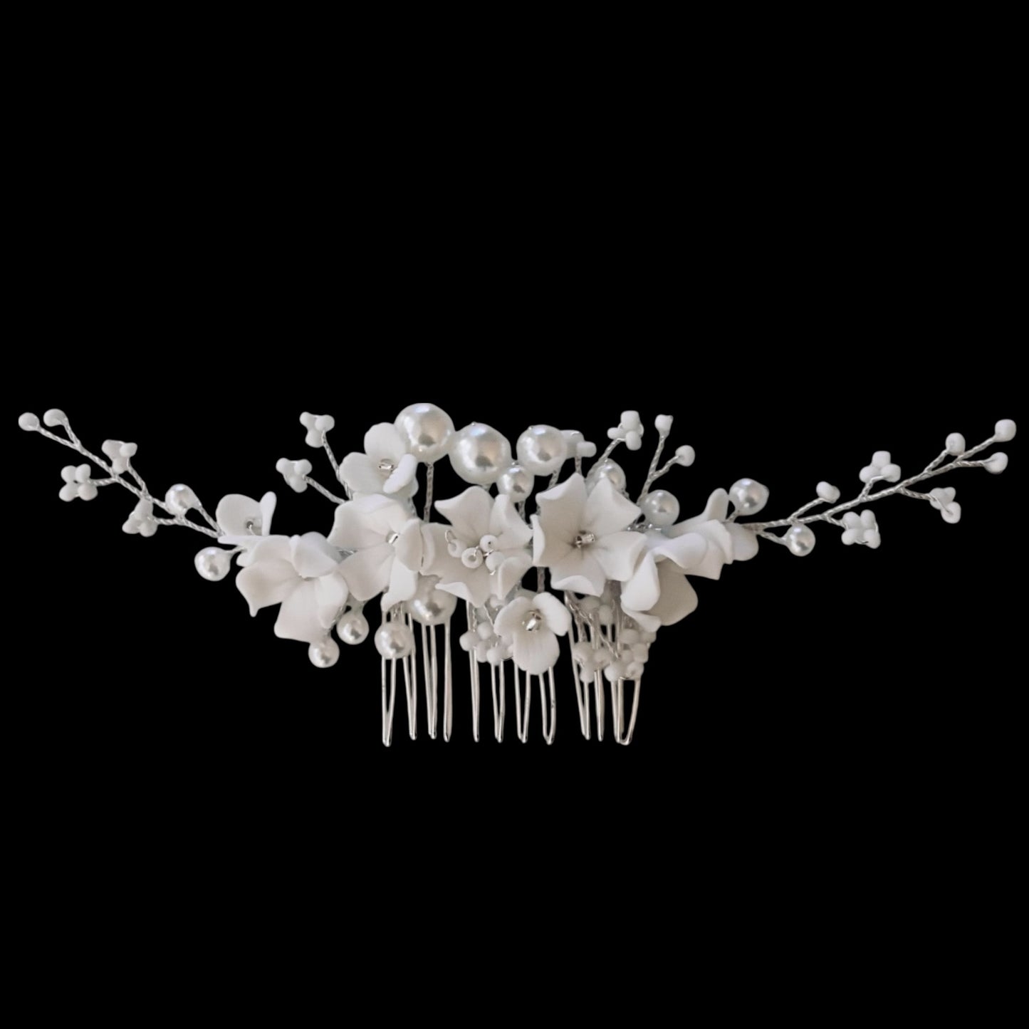 Floral Wedding Hair Comb with Lustrous Pearls TT1133