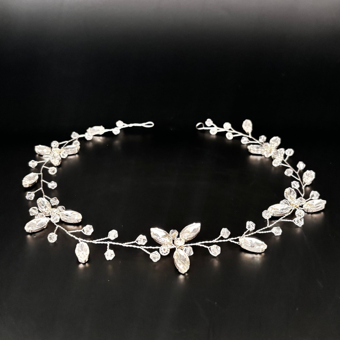 Enhance your bridal hairstyle with this sophisticated silver hair vine adorned with dazzling crystals. Versatile and delicate, this stunning headpiece is perfect for both brides and bridesmaids, adding a touch of luxury to any wedding look. Embrace an elegant and exclusive aura with this exquisite boho-inspired accessory.