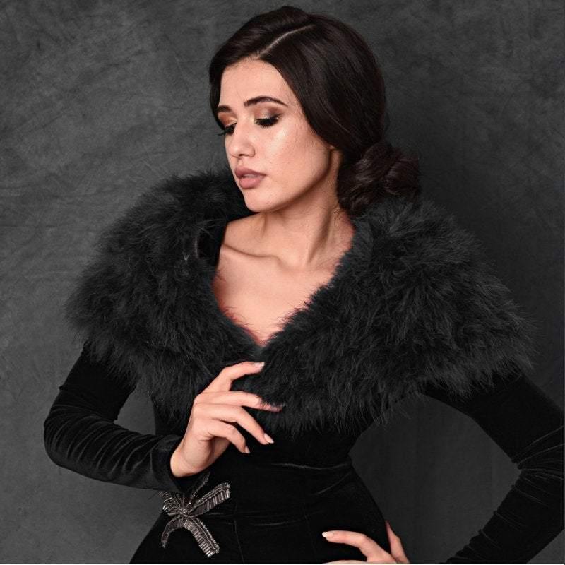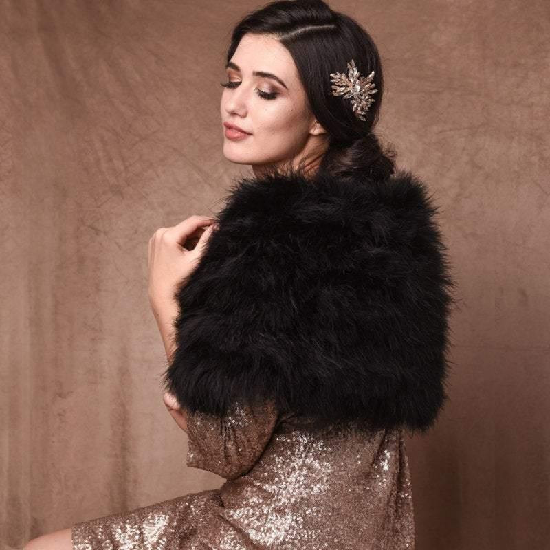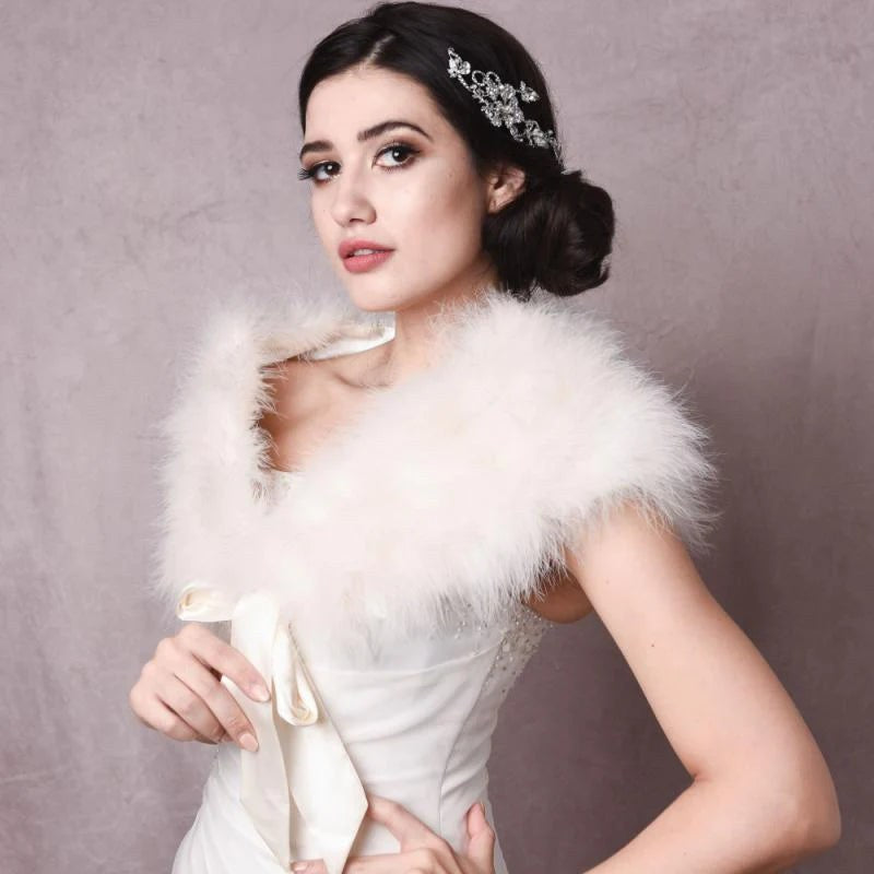 Add a touch of timeless glamour to your bridal look with our luxurious marabou feather shrugs and wraps. Perfect for brides seeking elegance, warmth, and a statement accessory, each piece is crafted from soft, high-quality marabou feathers that drape beautifully over your shoulders. Whether you’re enhancing a strapless gown, creating a vintage-inspired style, or simply adding a little extra sparkle to your day, our feather wraps provide the perfect finishing touch. Not just for brides, these versatile shrugs and wraps are also a stunning choice for bridesmaids, evening wear, and other special occasions—bringing sophistication and a hint of old-Hollywood charm to any outfit.