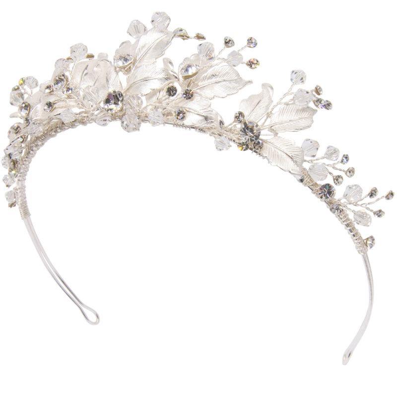 Regular price £114.71Elevate your bridal ensemble with this exquisite Crystal and Pearl Bridal Tiara in Silver. Delicately crafted, it features a bed of clear crystals and shimmering pearls, artfully intertwined with silver hand-painted leaves that wrap around the design like a graceful embrace. This tiara adds a refined sparkle and subtle elegance, creating a harmonious balance of beauty and sophistication. Perfect for enhancing your wedding day look, it brings a timeless charm that complements both classic and contemporary styles. A truly enchanting accessory to make your special moment even more memorable.