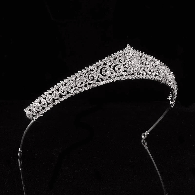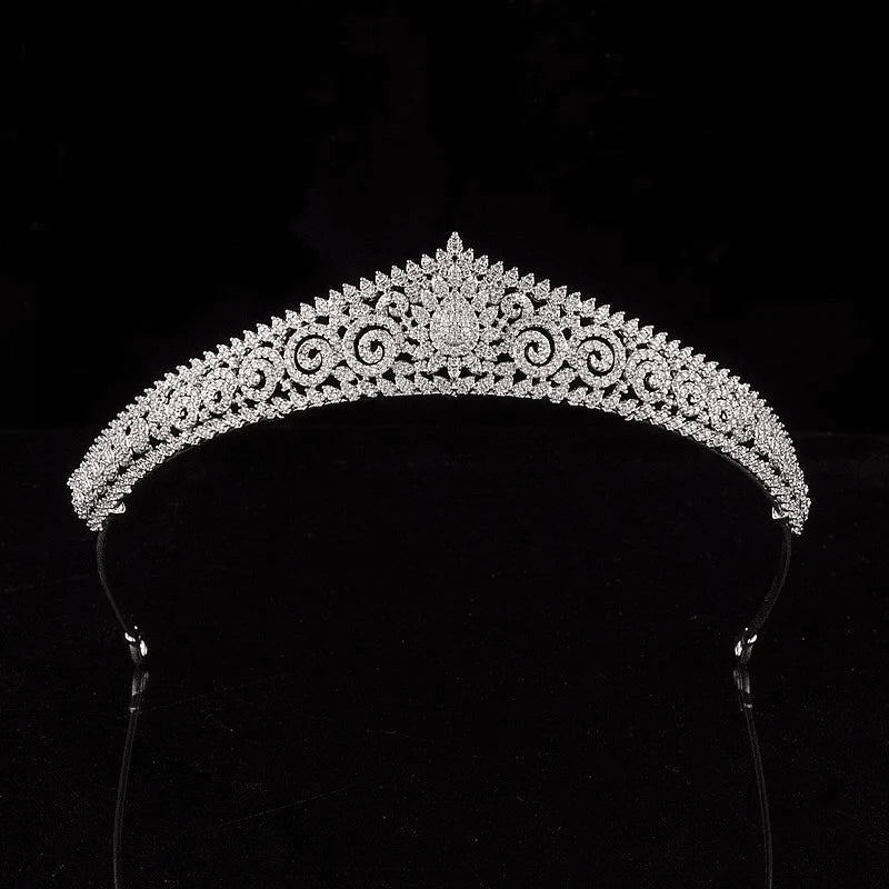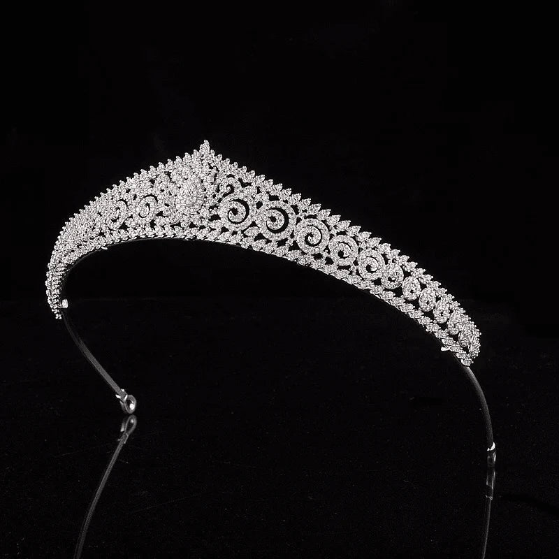 Create a breathtaking look on your wedding day with the intense glory of this beautiful crystal bridal crown. A dazzling depiction of flawless crystal-work. As the light catches the multitude of marquise clear cut crystals on this exquisite wedding tiara, you will certainly radiate like a Regal Queen. With intense brilliant cut crystals, this is truly an intricate and highly detailed bridal headpiece. A truly stunning bridal hair accessory to make you glow and shine like a star on your special day.