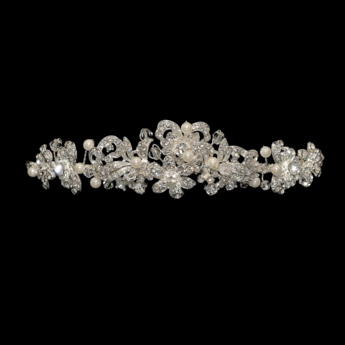 Crystal & Pearl Floral Bridal Tiara – Elegant Silver Wedding Headpiece TLT4618