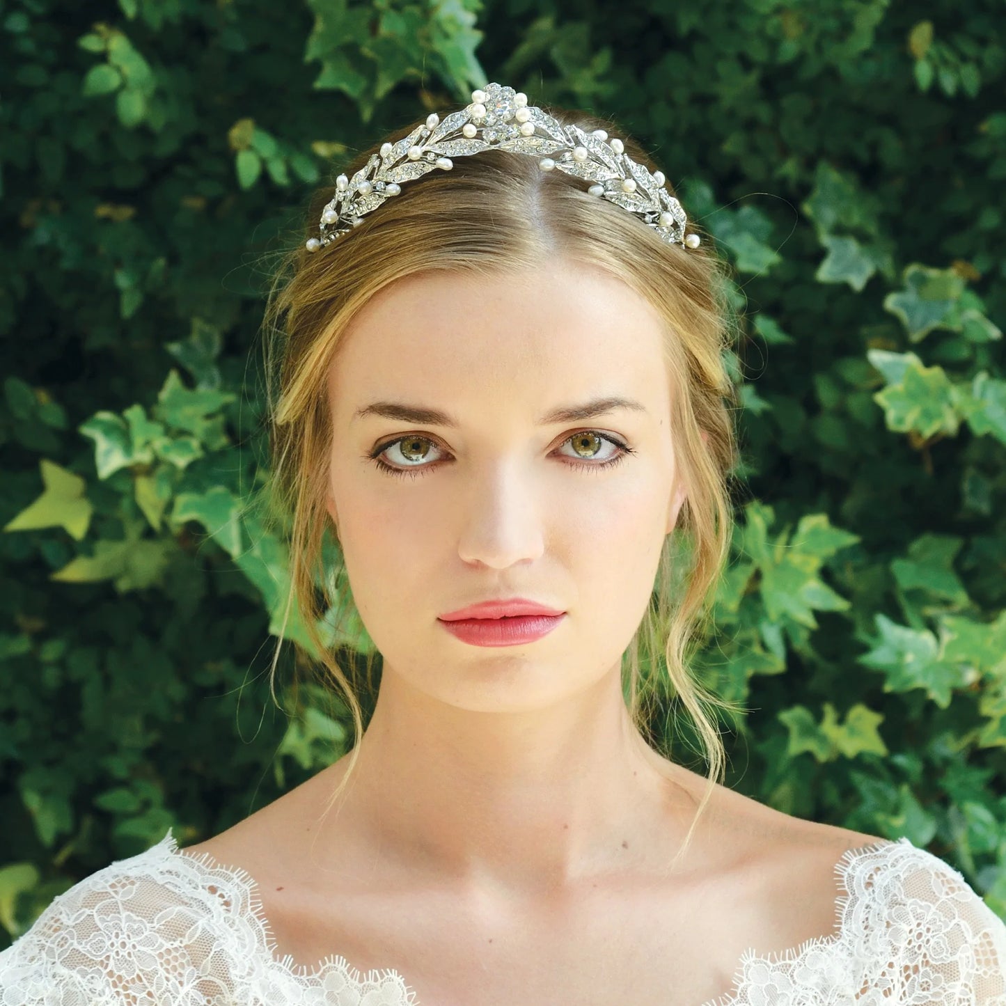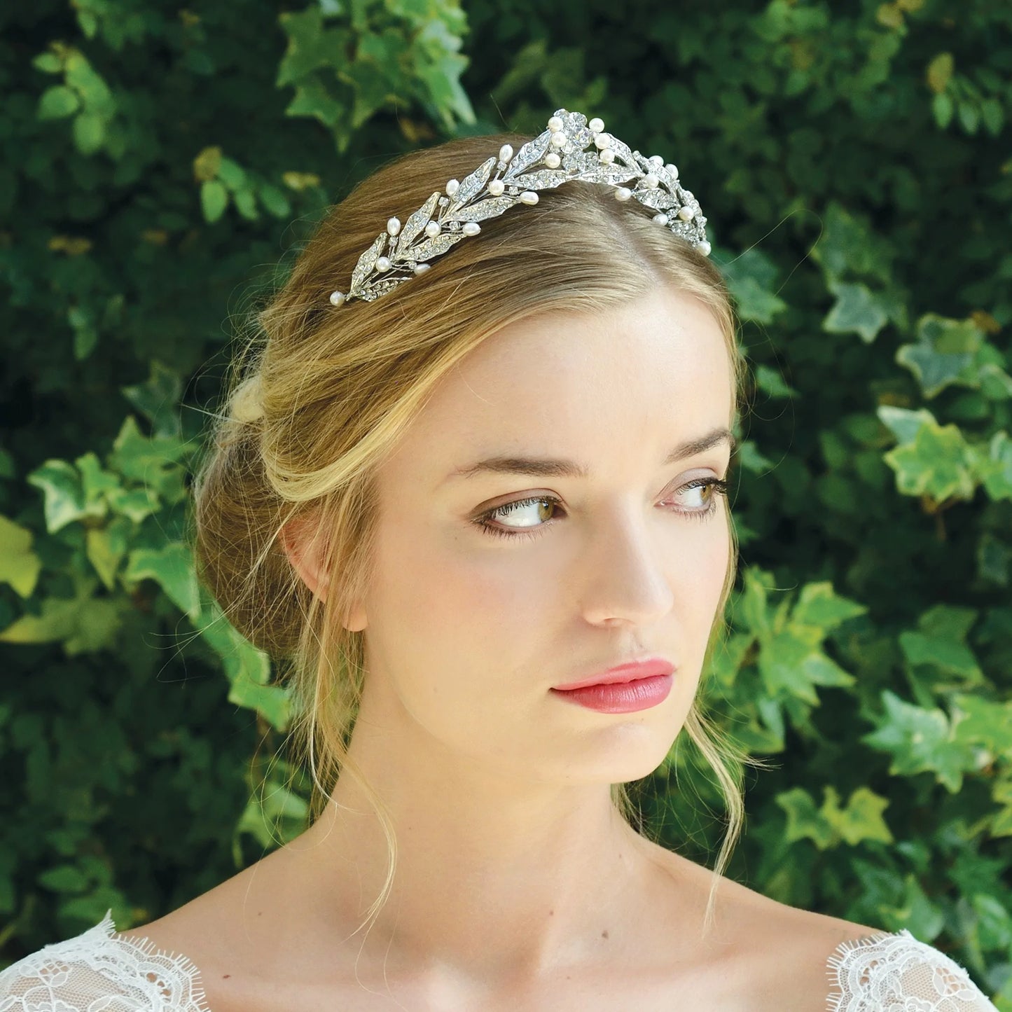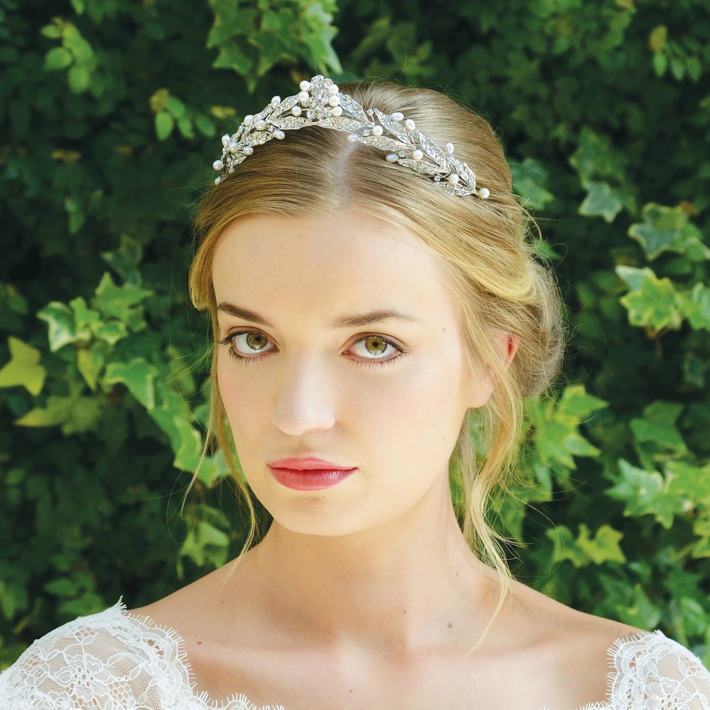 Laurel Wreath Bridal Tiara with Crystal and Pearls, PERSEPHONE
