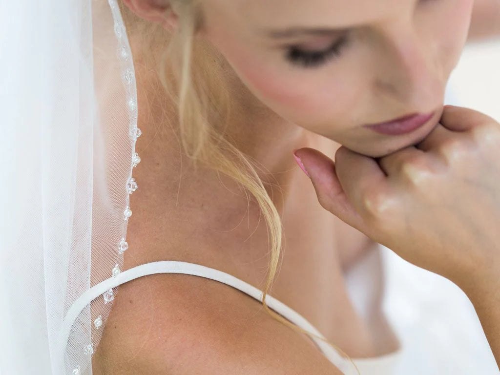 Azalea is a cute short single tier bridal veil, finished with a stunning pearl and crystal beaded edge for a touch of shimmer, perfect for the bride looking to make a subtle statement to her bridal look.