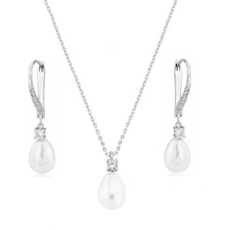 Silver Vintage Inspired Pearl Bridal Jewellery Set 7678