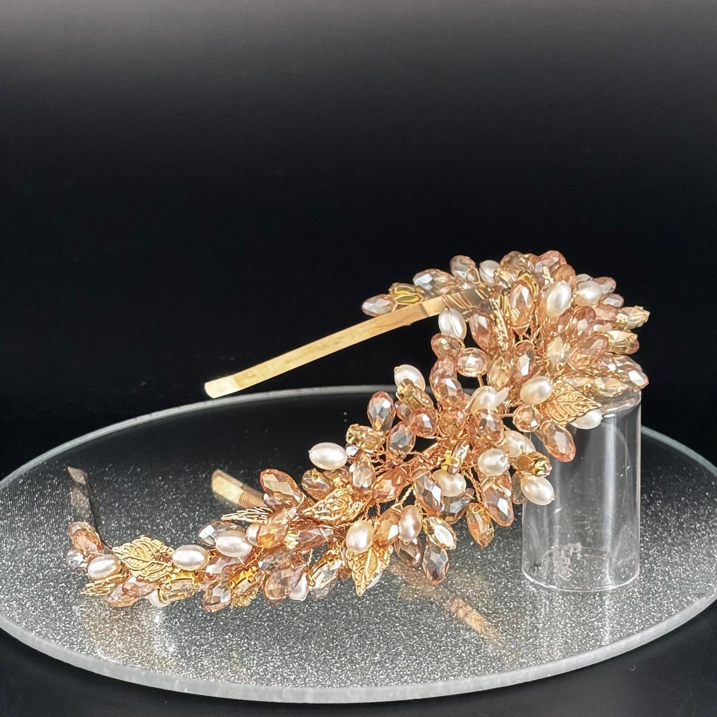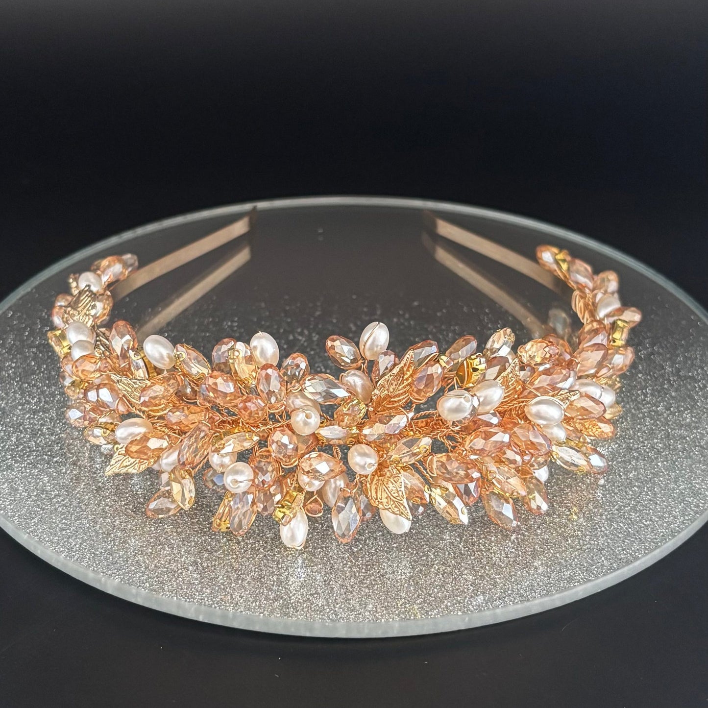 Gold Bridal Headband Embellished with Champagne Gold Crystals TT1037