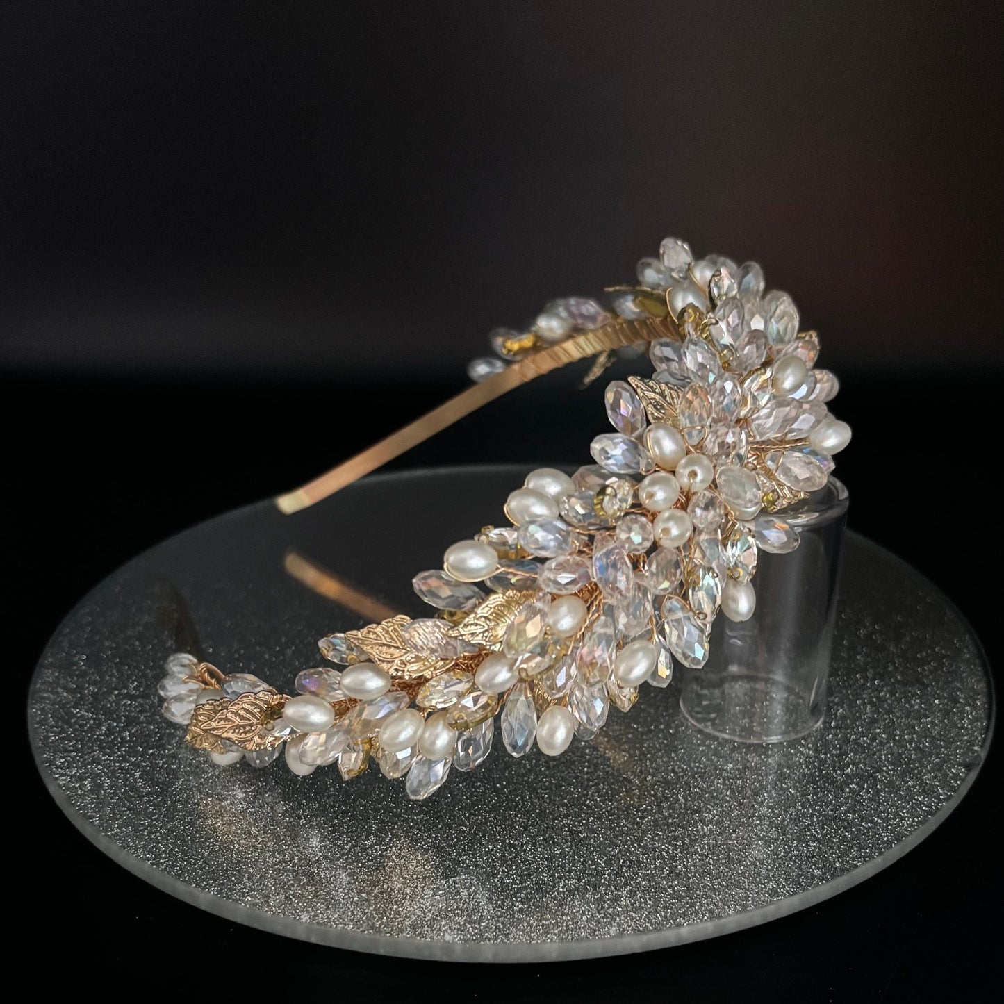 Gold Bridal Headpiece with Crystals & Pearls, TT1069