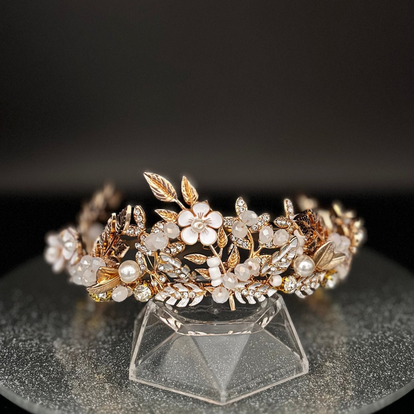 Gold Bridal Headband with Opal Crystals & Diamantés TT1031