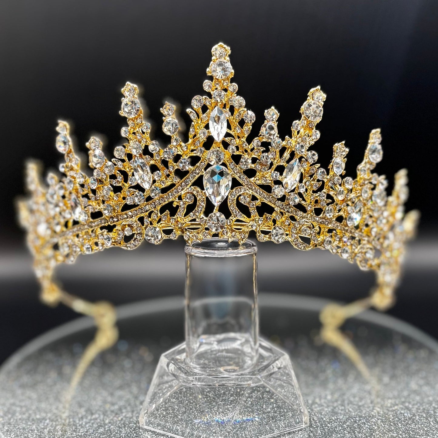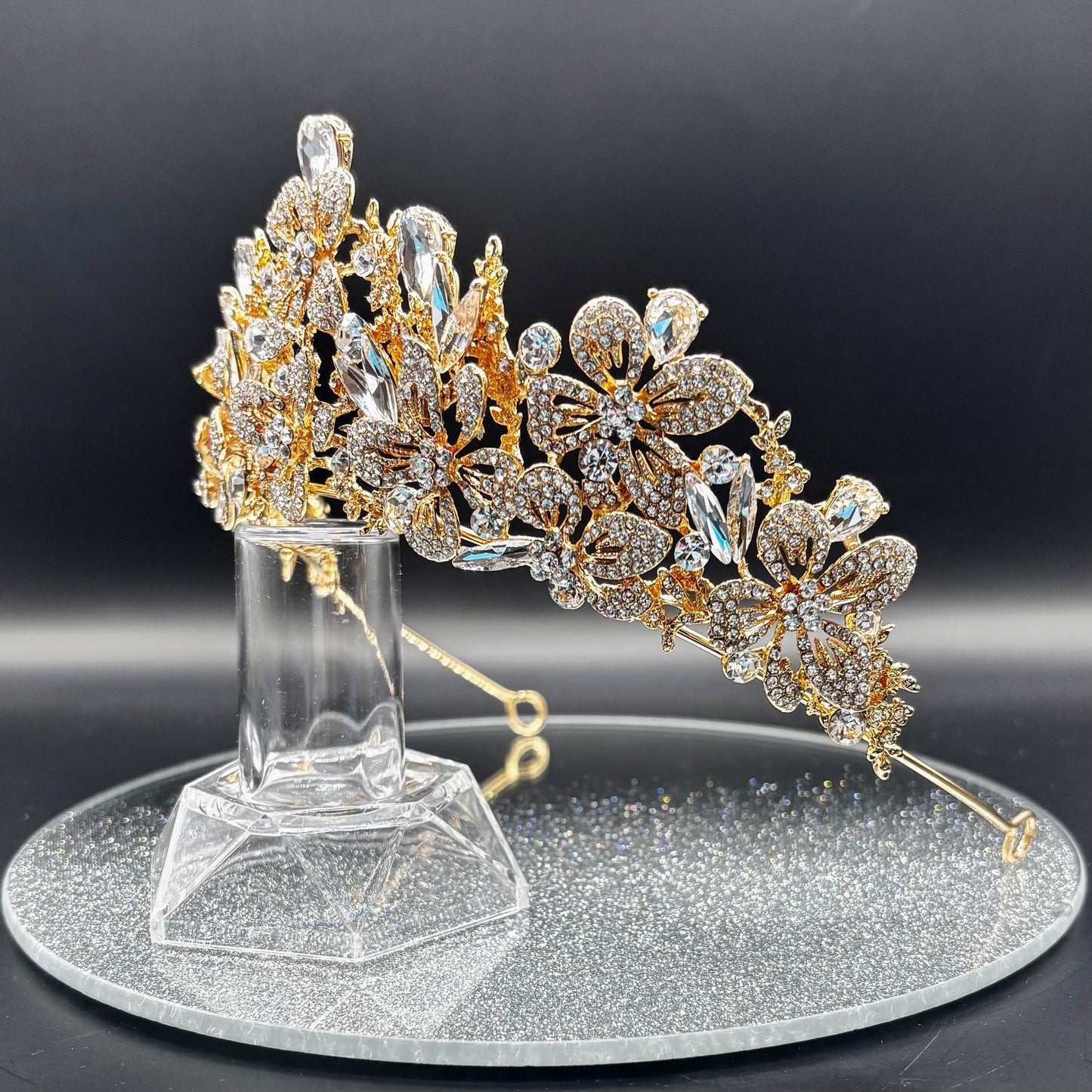 Gold Crystal Wedding Tiara, Bridal Headdress TT1019