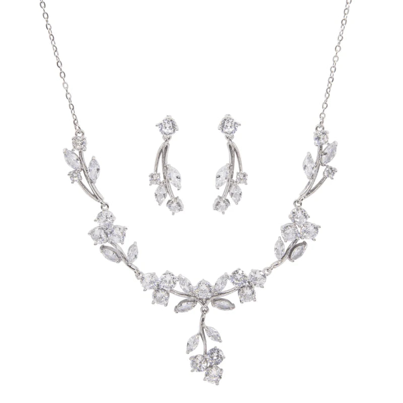 A captivatingly feminine necklace and earring set to enrich your special day attire.