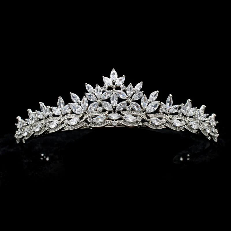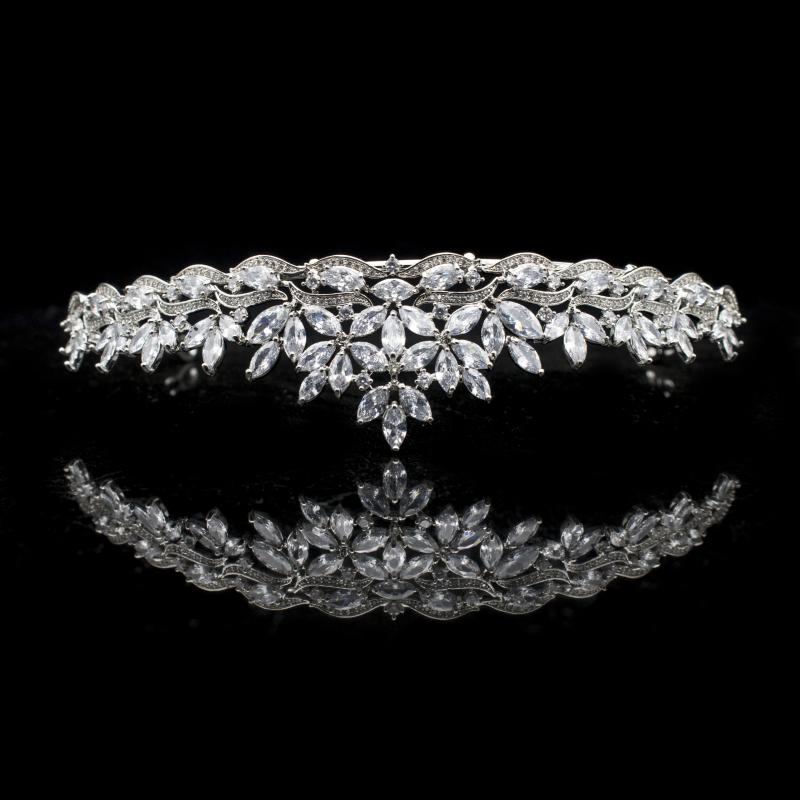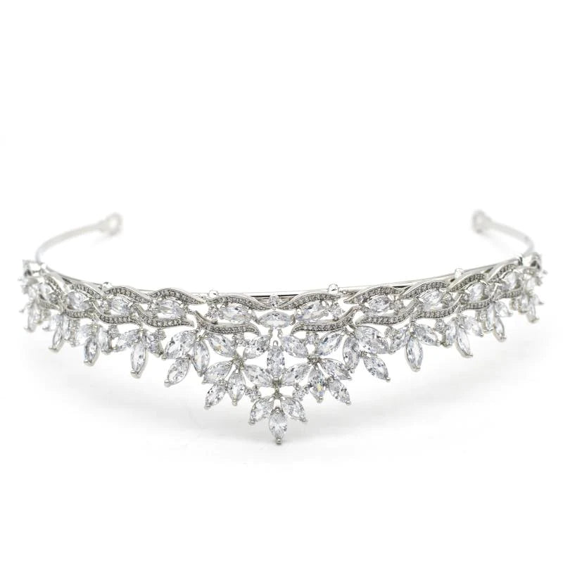 Allow yourself to be crowned by the regal beauty of this exquisite bridal tiara. An utterly magical work of intense crystal craftsmanship, catch the light and radiate like the goddess you are with a multitude of clear cut crystals . The exquisite symmetry of this bridal headpiece will help you to glow and shine like a star on your day of enchantment. A stunning bridal tiara to complement your wedding gown on your special day.