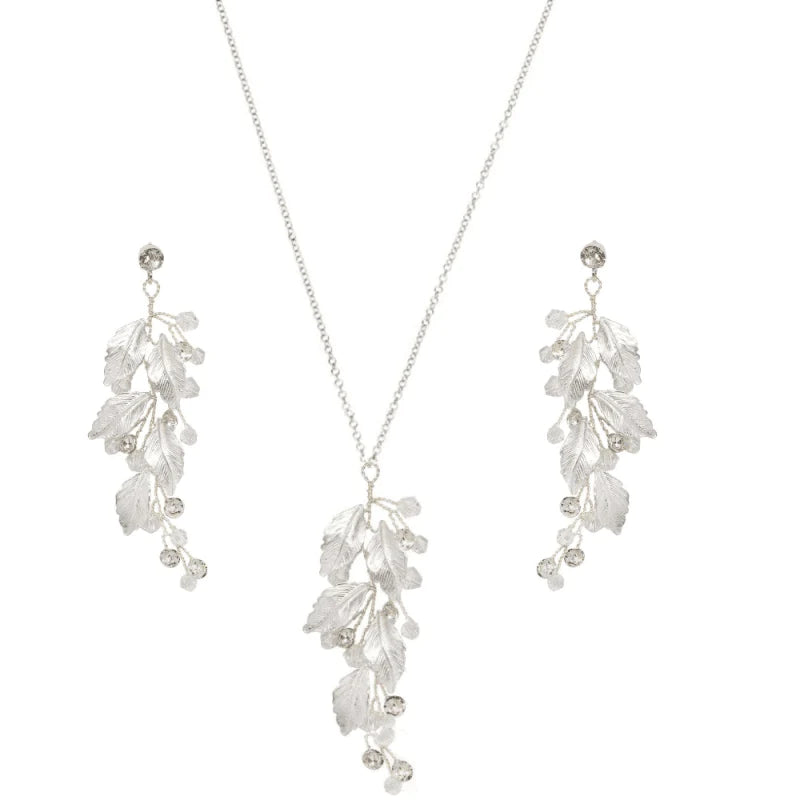 Brides Leaf Necklace & Earring Set with Crystals, A9808