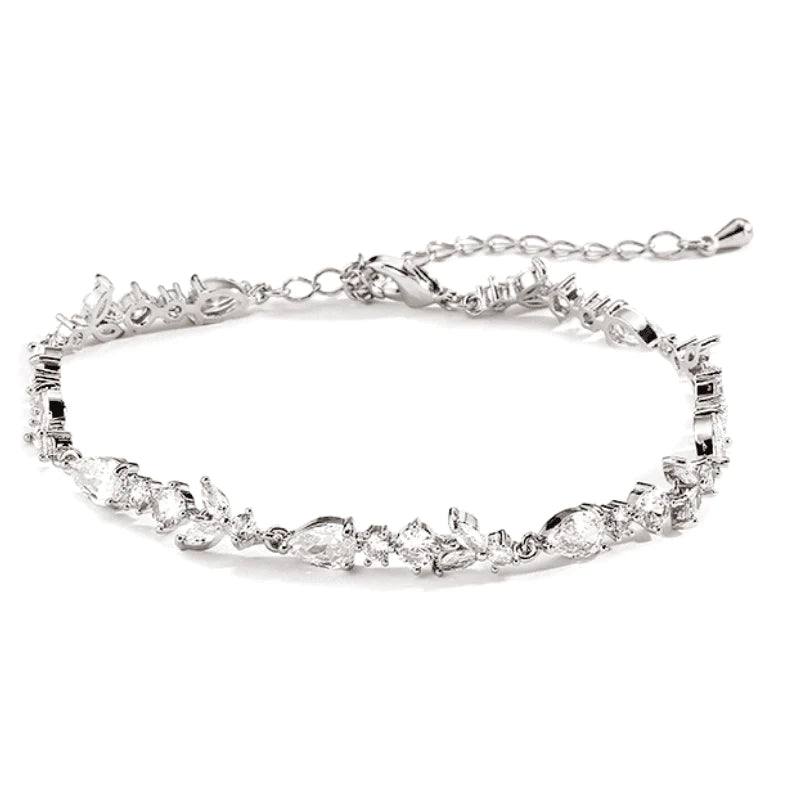 A beautiful dainty wedding bracelet in a chic and stylish design. This lovely silver bracelet is embellished with gorgeous high quality cubic zirconia crystals and has an adjustable chain. A very pretty crystal bracelet for brides or for bridesmaids gifts as a thank you. Just a lovely finishing touch to your wedding day look.