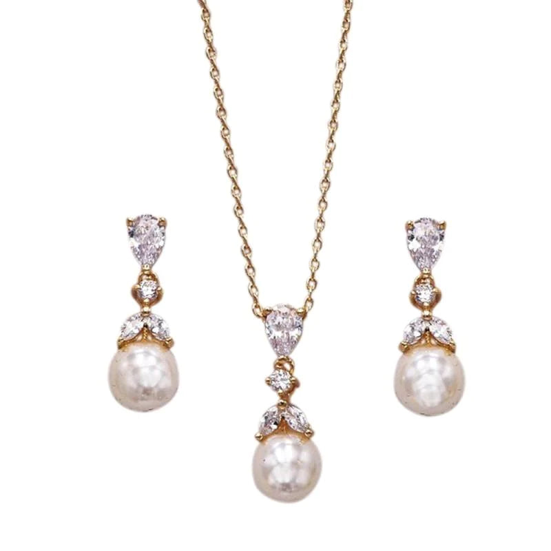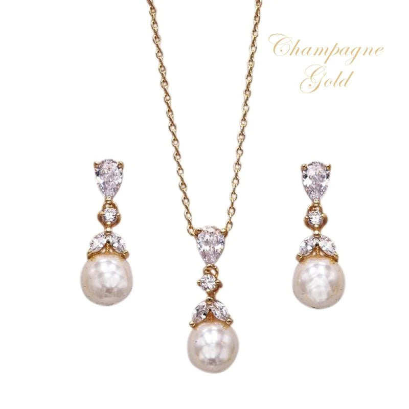 Champagne Gold Crystal and Pearl Bridal Jewellery Set 7534