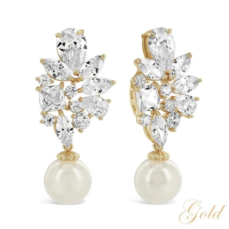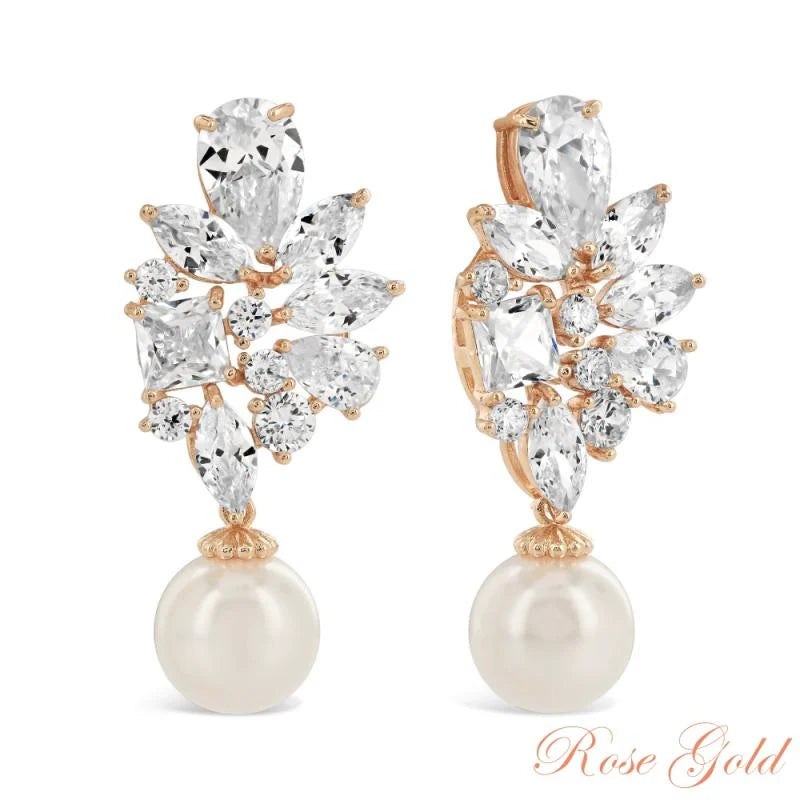 Crystal and Pearl Drop Earrings, Gold, Rose Gold, Silver, Bridal Jewellery