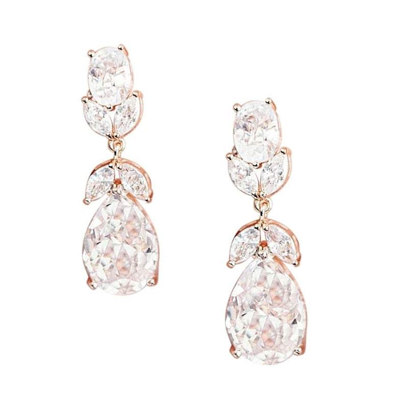 Crystal Starlet Earrings, Rose Gold or Silver, Bridal Jewellery 7196,7437-Rose Gold