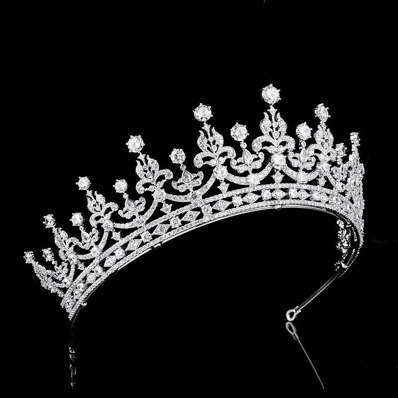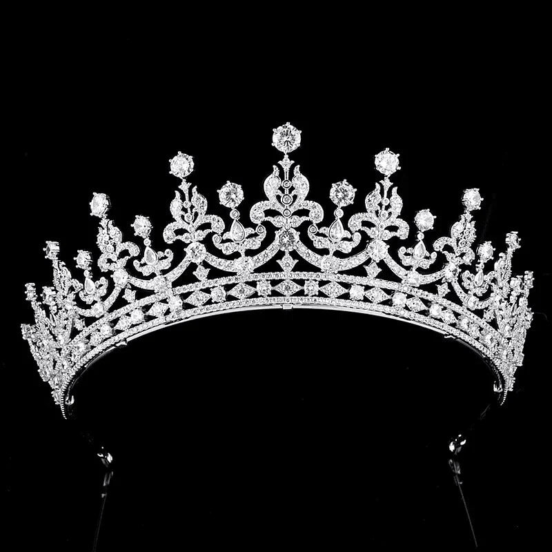 Create a breathtaking look on your wedding day with the intense glory of this beautiful bridal crown. A dazzling depiction of flawless crystal-work. As the light catches the multitude of marquise clear cut crystals on this exquisite wedding tiara, you will certainly radiate like a Regal Queen. From an intense single row of brilliant cut crystals and epic crystal starbursts this is truly an intricate and highly detailed bridal headpiece, perfectly balanced by clever use of crystal cut and size, that will elevate your look from the mundane to the simply magical. A stunning bridal hair accessory to complement your wedding gown on your special day.