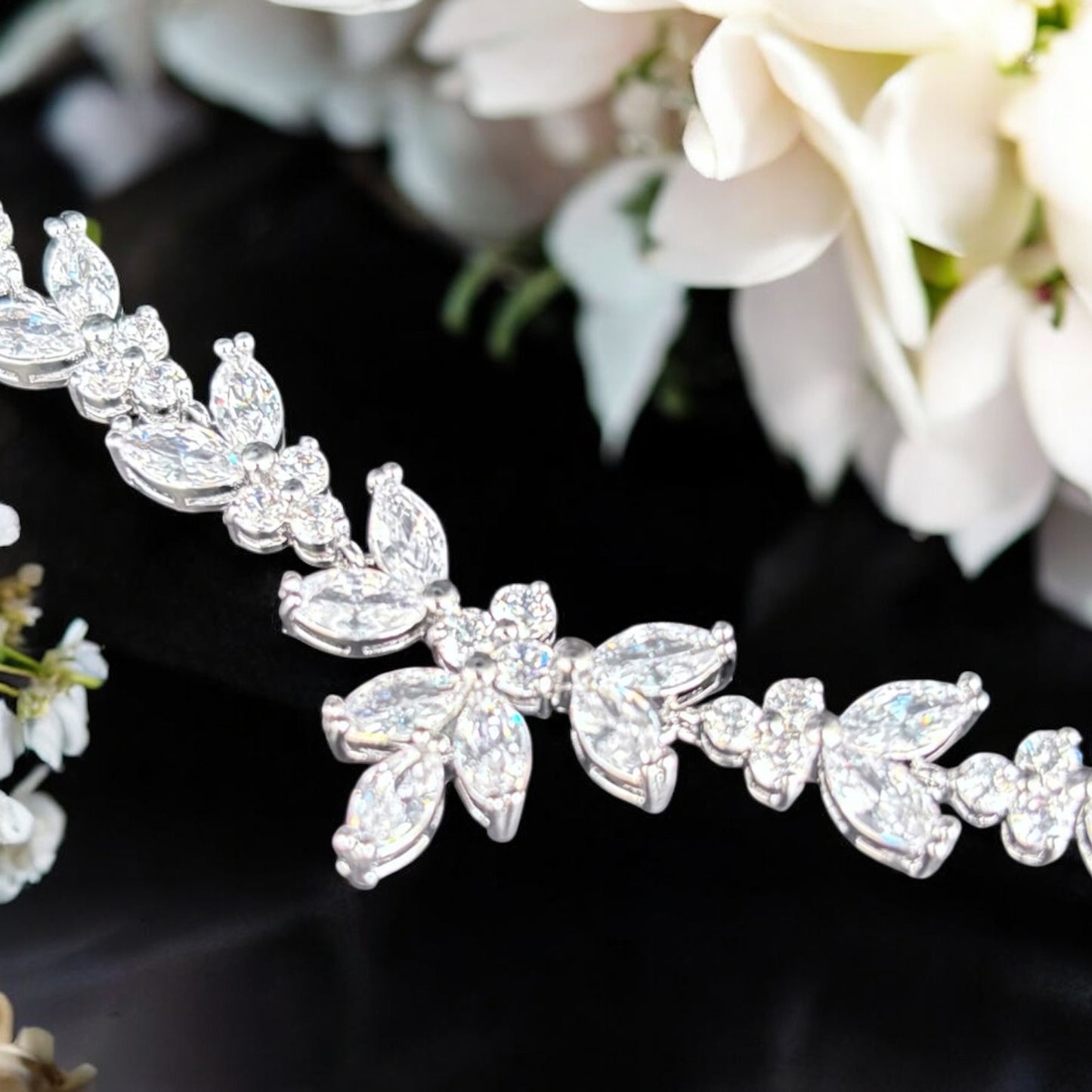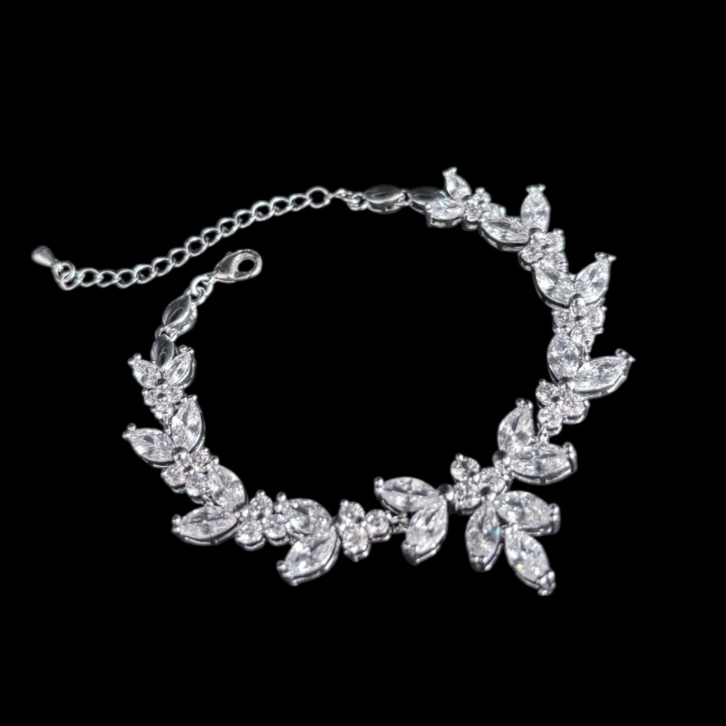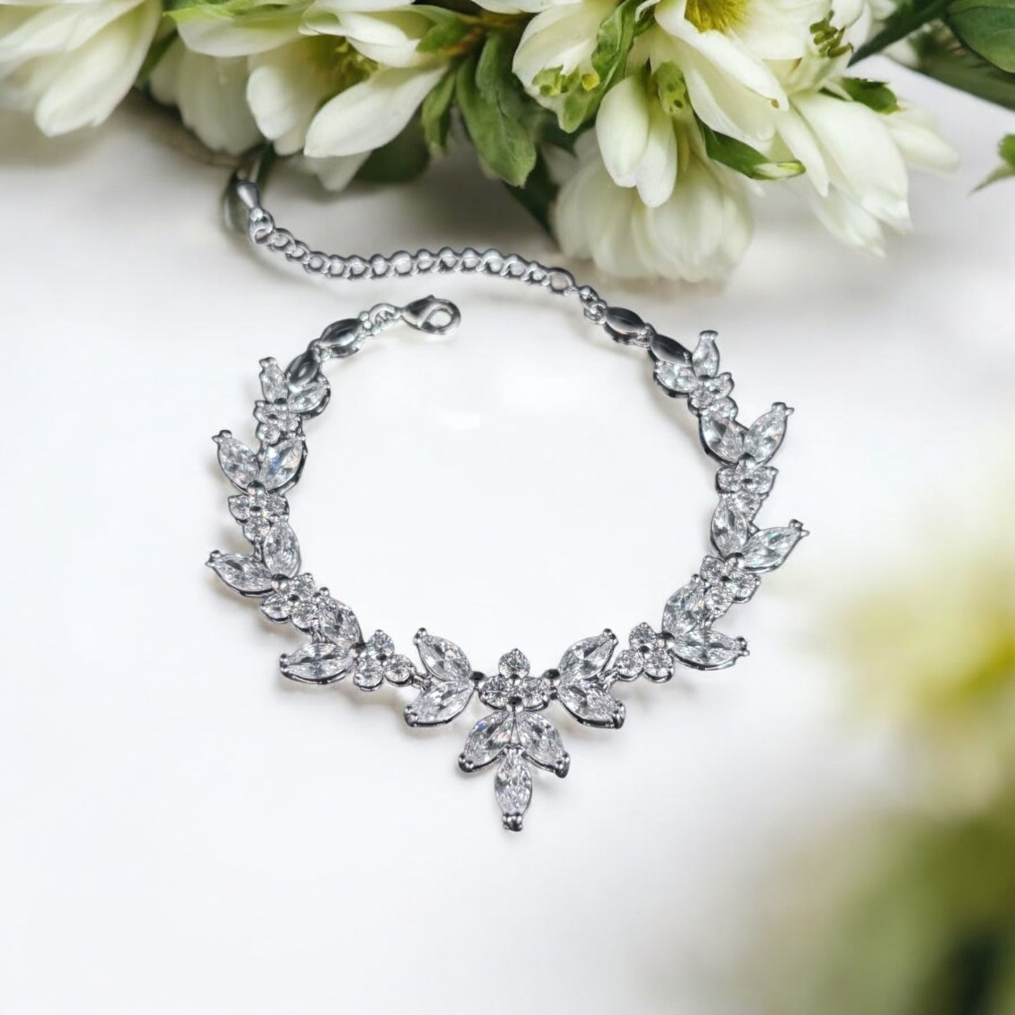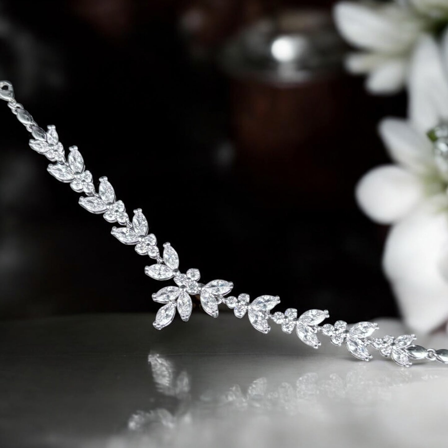 Floral Crystal Bridal Bracelet – Elegant Silver Wedding Jewellery TT1113