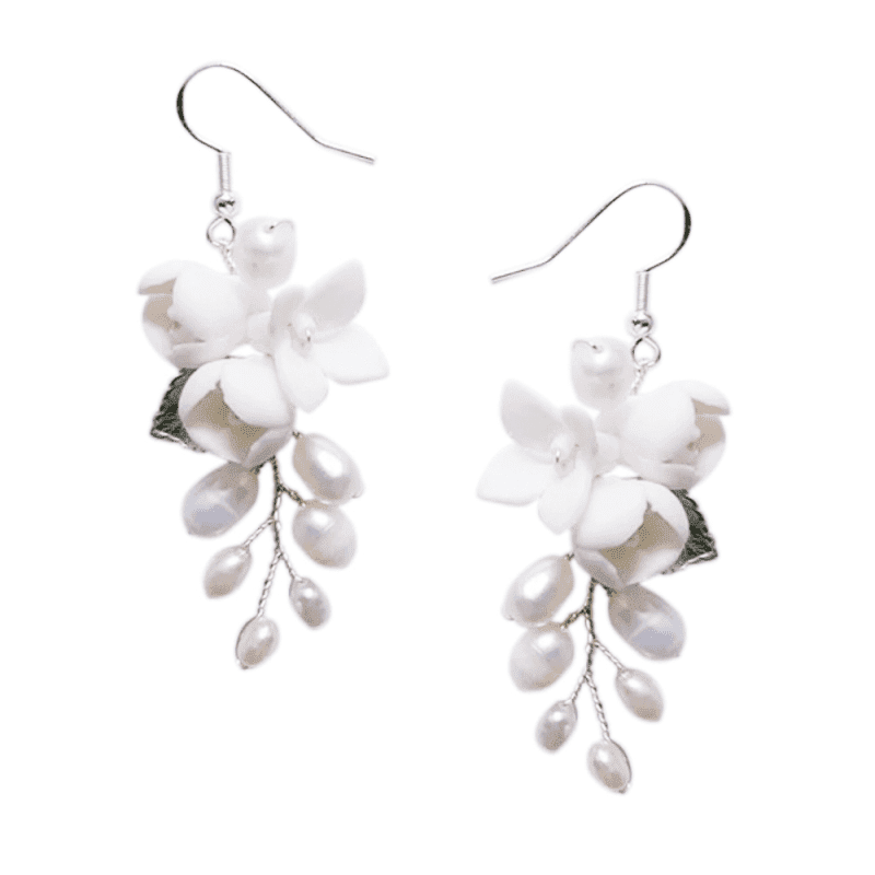Floral Drop Wedding Earrings with Freshwater Pearls, A9328