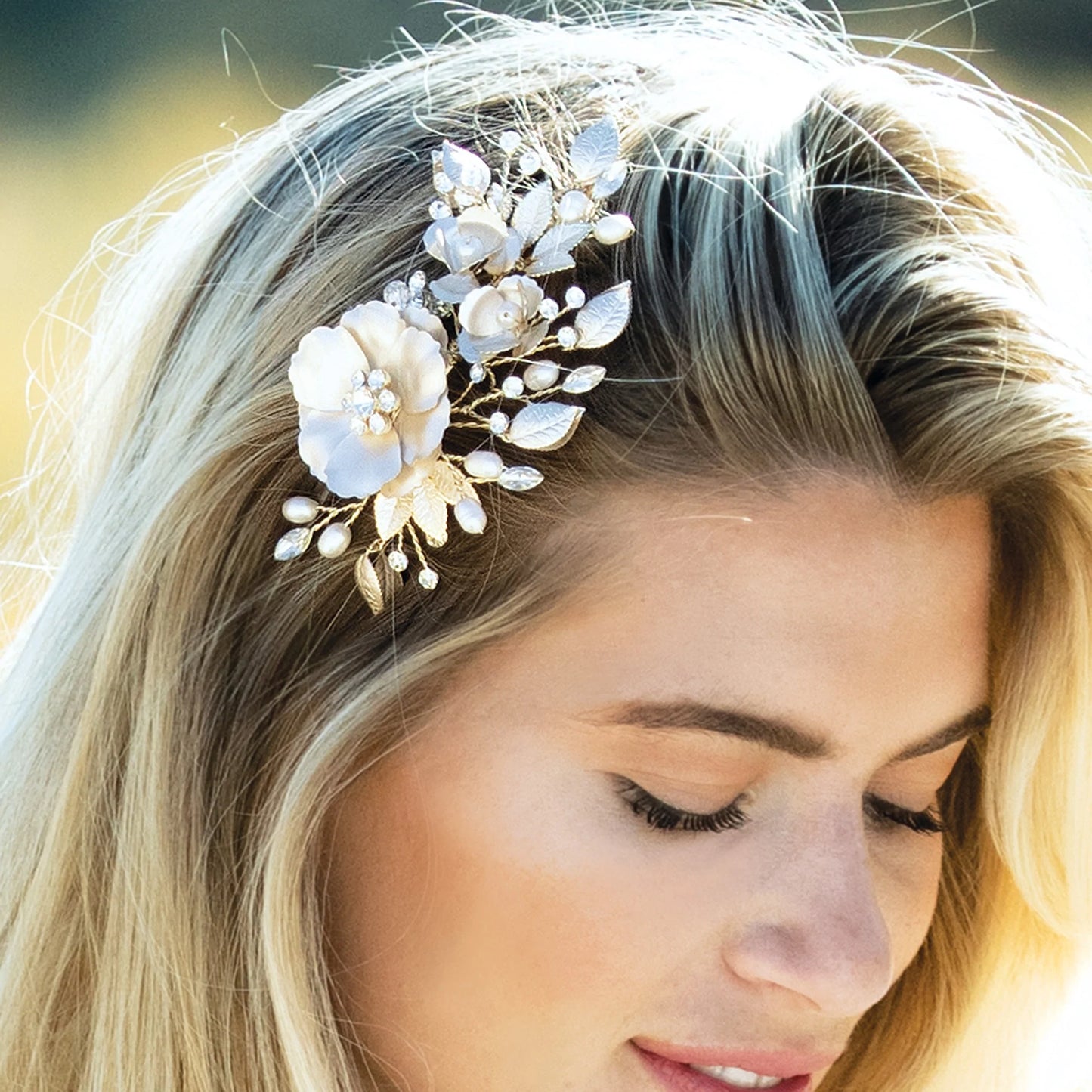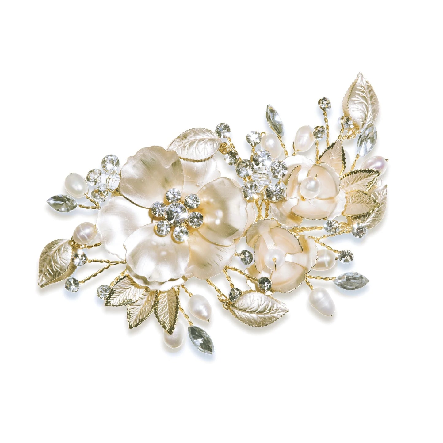 Floral Wedding Hair Clip with Crystals and Pearls SUNRISE