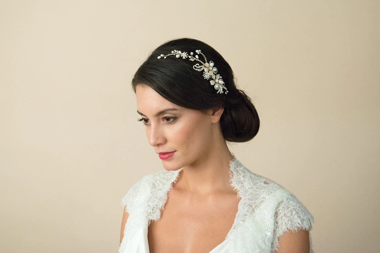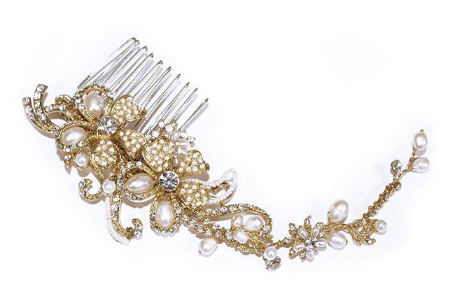 Gold Bridal Hair Comb By Ivory & Co, GOLD PEARL SCROLL