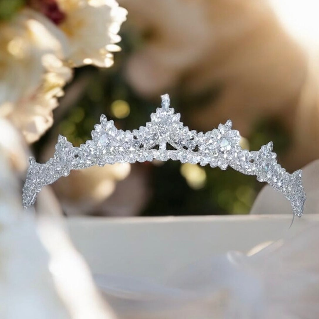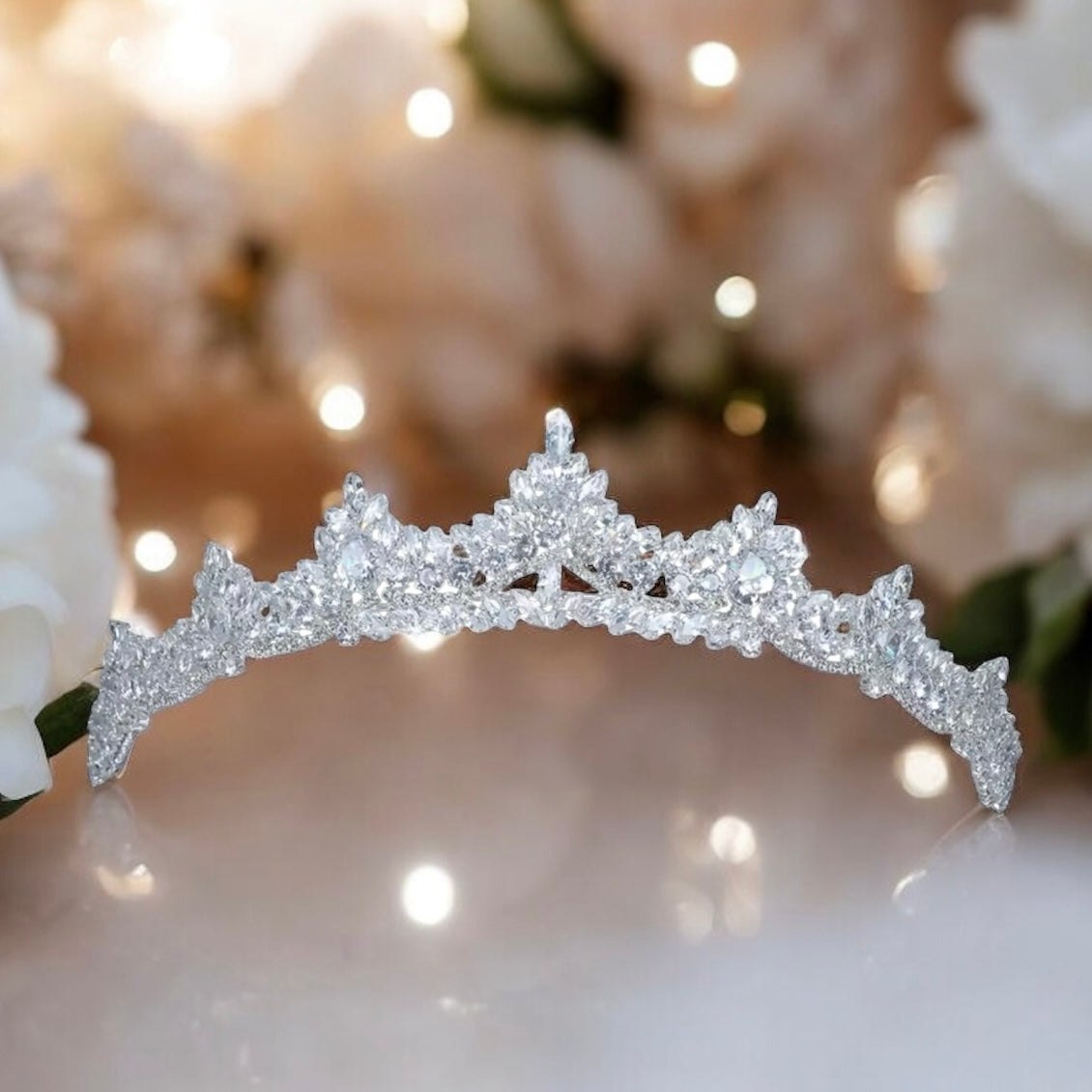 Handcrafted crystal bridal tiara with cubic zirconia crystals