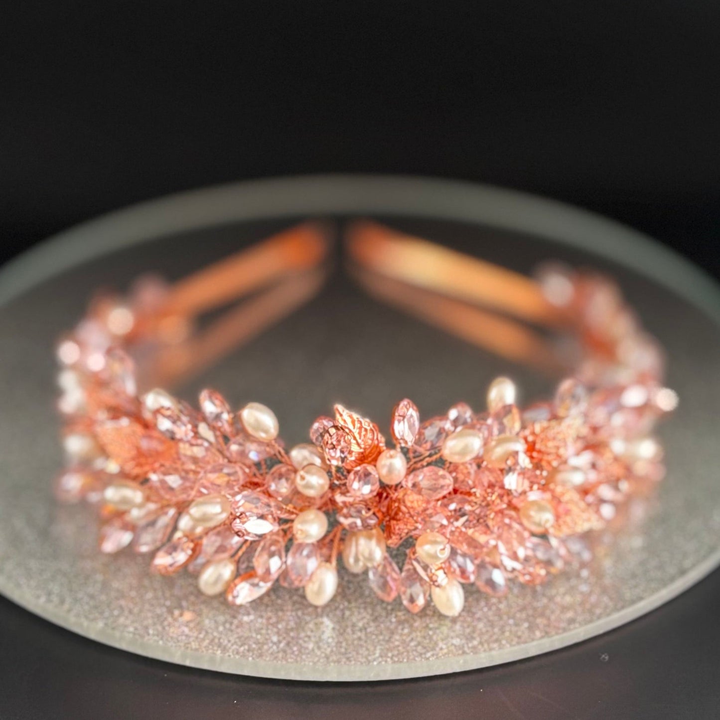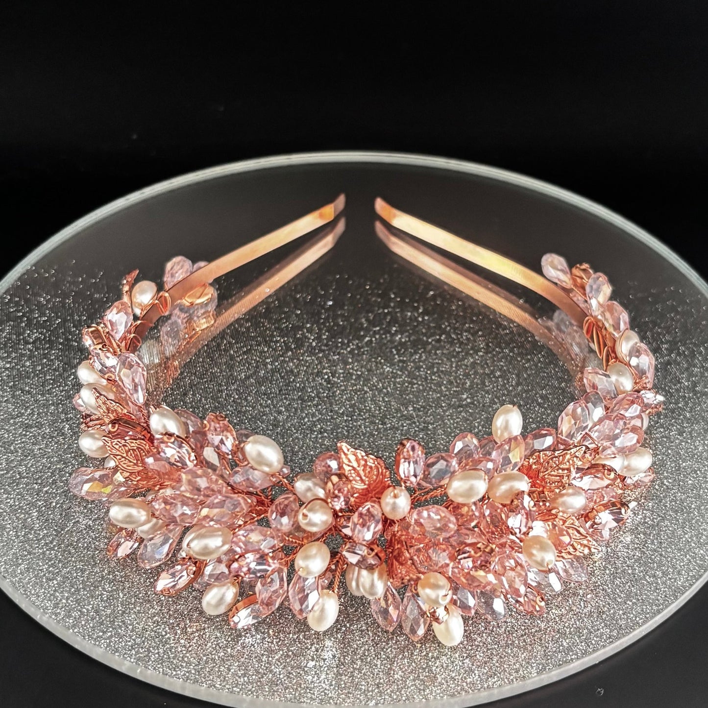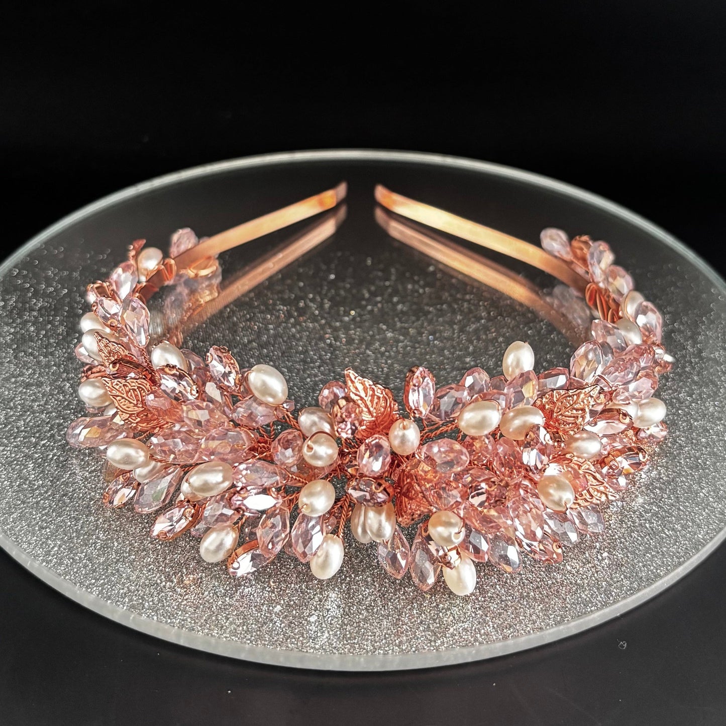 Rose Gold Bridal Headband with Pink Crystals TT1042
