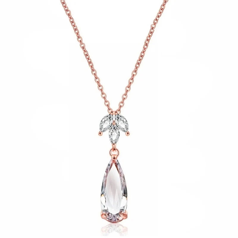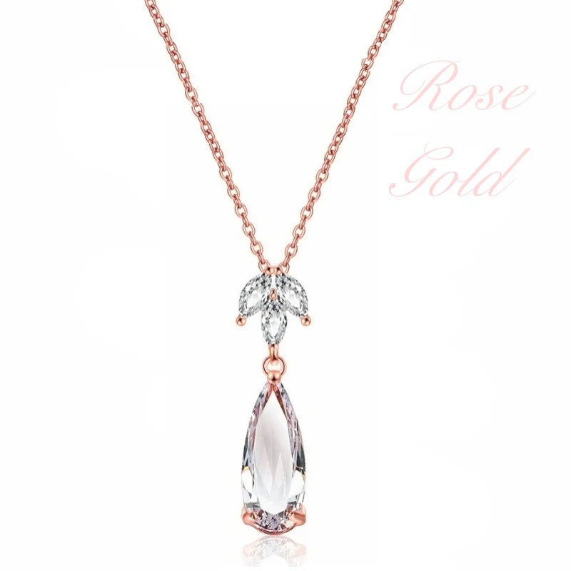 Rose Gold Crystal Drop Necklace, Bridal Jewellery 9169