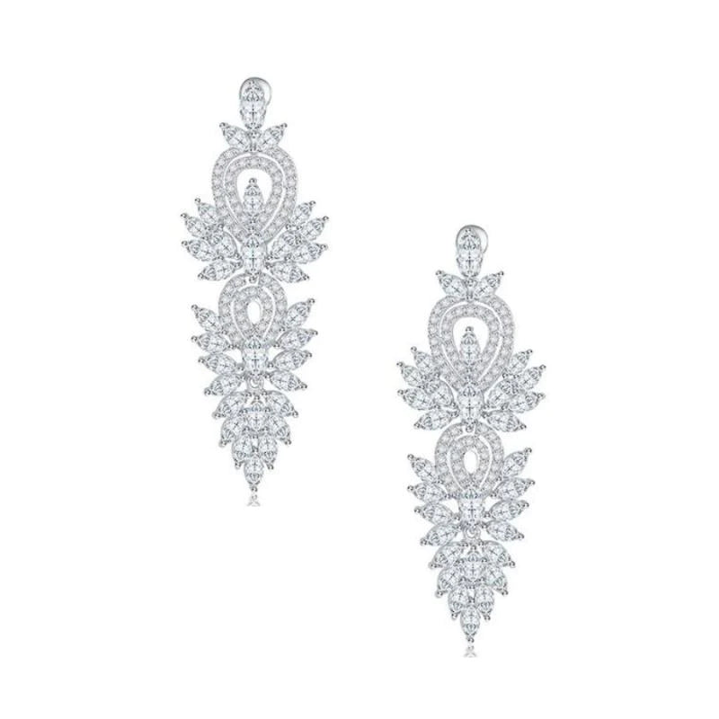 These truly are elegant statement crystal earrings. Set with high quality Cubic Zirconia Crystals on a silver plated plated finish. Beautiful bridal jewellery.