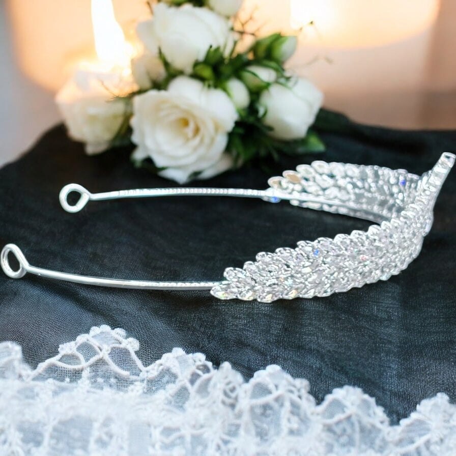 Silver Crystal Wedding Tiara, Bridal Headdress, TT1064