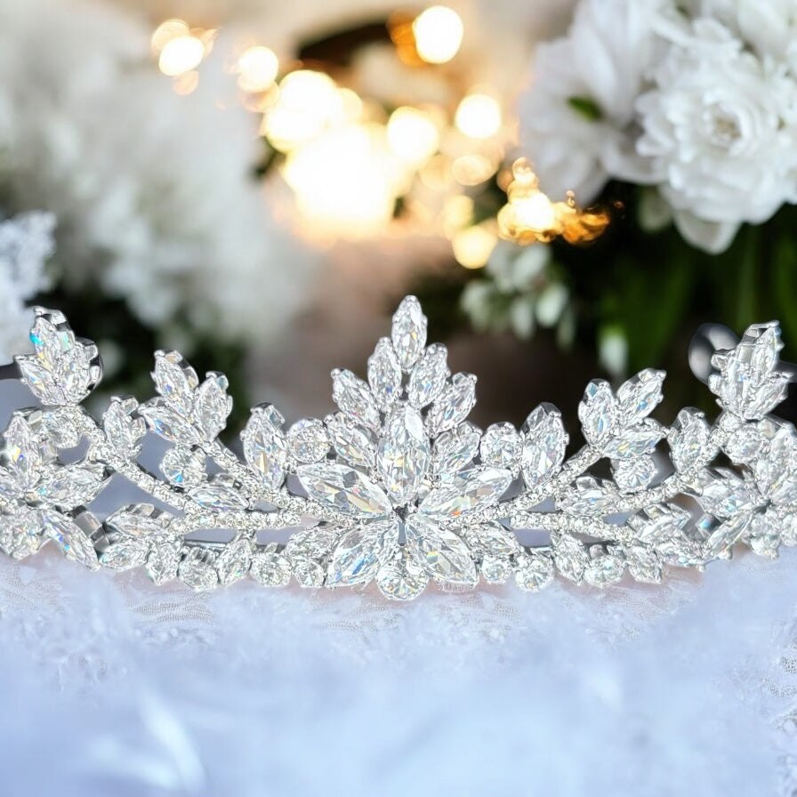 Silver Crystal Wedding Tiara, Bridal Headdress, TT1065