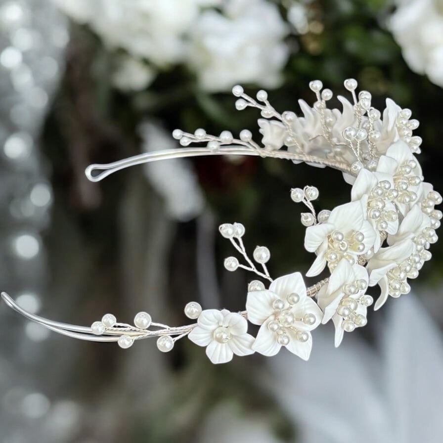 Regular price £52.70Silver Floral Wedding Headband with Pearls