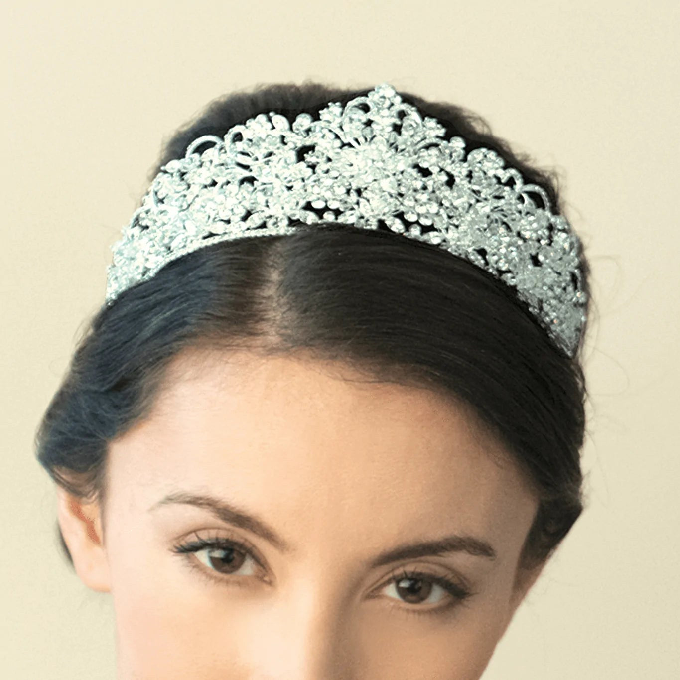 This very grand bridal tiara is just stunning and would add the real wow factor to your beautiful wedding gown. This beautiful bridal headdress has been created using an array of brilliant stones in cut marquise and solitaires, forming intertwined flowers and leaves. Such a wonderful bridal headpiece for brides wanting to make a dramatic statement.