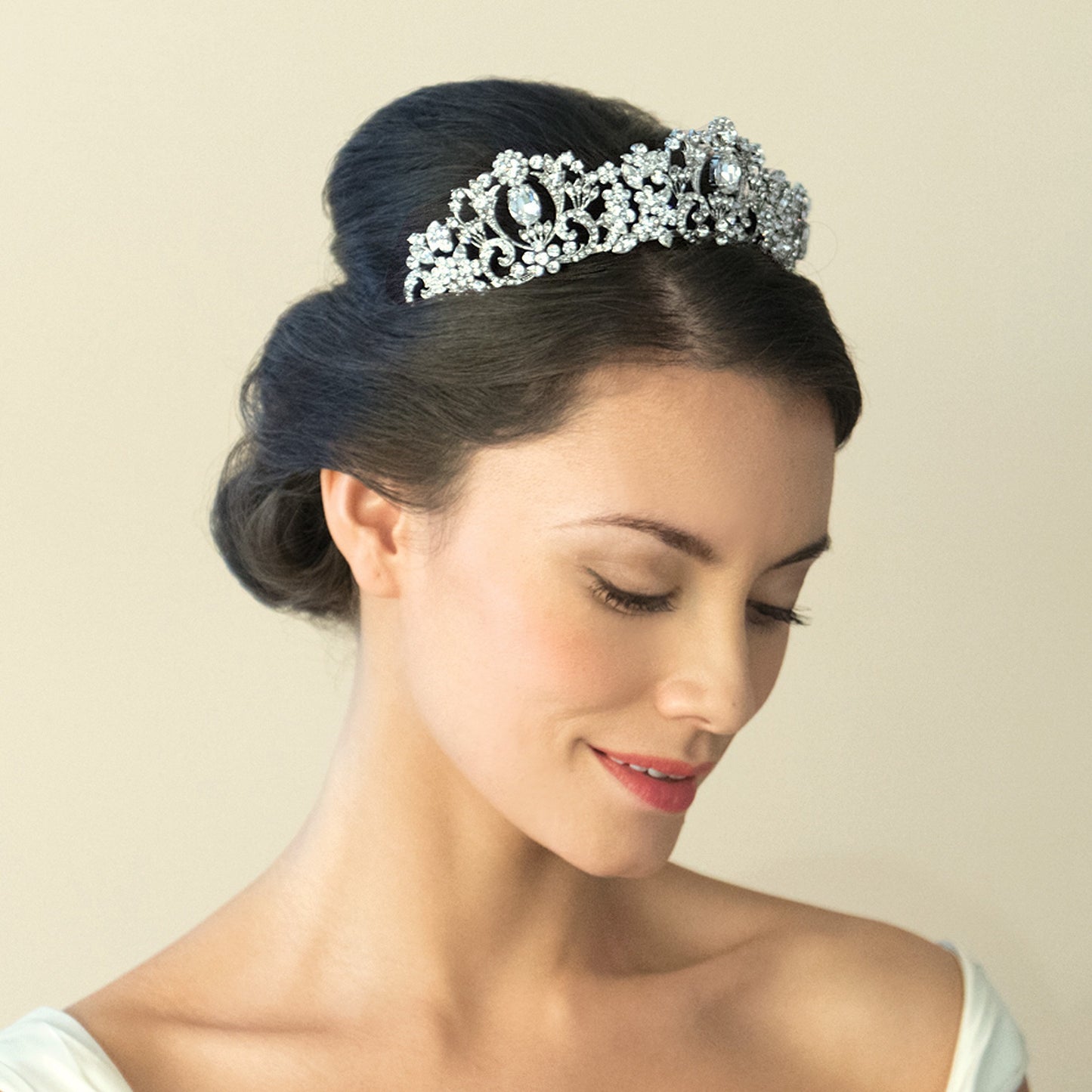 Silver Wedding Tiara with Austrian Crystals By Ivory & Co, Millicent